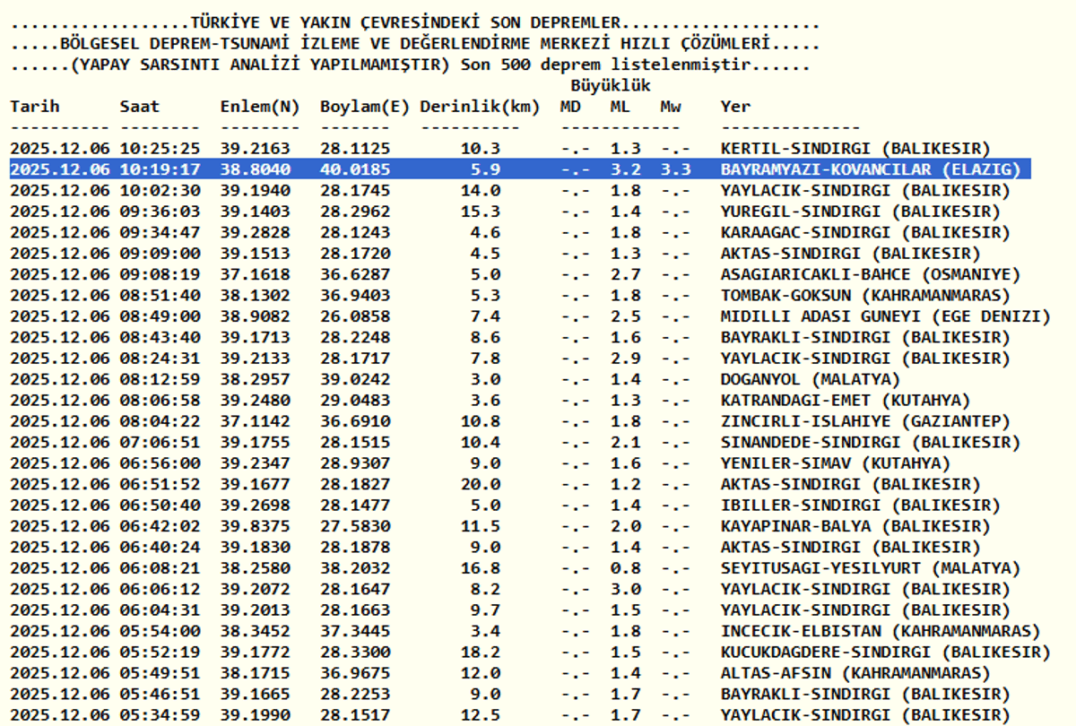 Elazığ depremle sallandı | Çevre illerde de hissedildi | 6 Aralık AFAD ve Kandilli Rasathanesi son depremler listesi