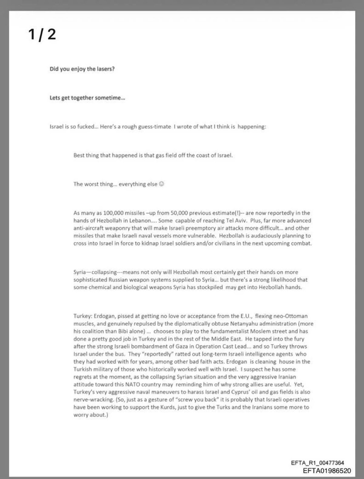“Neo-Osmanlı” ifadesiyle tanımlanan bu yaklaşımın, Türkiye’nin tarihsel ve diplomatik kapasitesini yeniden görünür kıldığı yorumuna yer verildi. Maillerde İsrail’in zayıf durumda olduğu, Cumhurbaşkanı Erdoğan’ın İsrail’in işgalci eylemlerinden tiksindiği bilgisi de yer aldı.