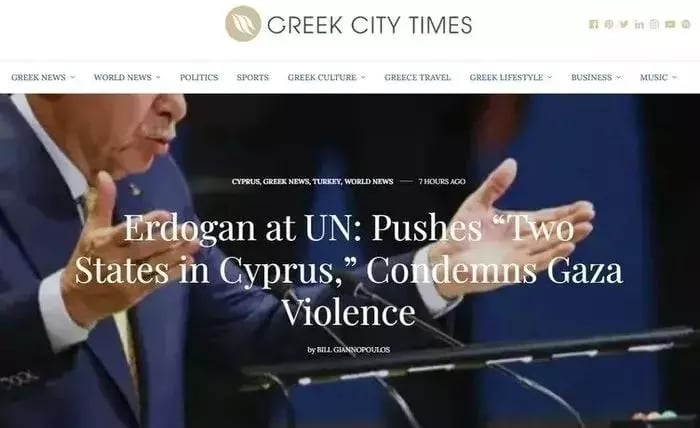 Yunanistan merkezli Greek City Times, Cumhurbaşkanı Erdoğan’ın konuşmasında Kuzey Kıbrıs Türk Cumhuriyeti hakkındaki sözlerine dikkat çekti. Cumhurbaşkanı Erdoğan, “Kıbrıs’ta 2 devlet vardır” diyerek KKTC’nin bağımsızlığını savundu.