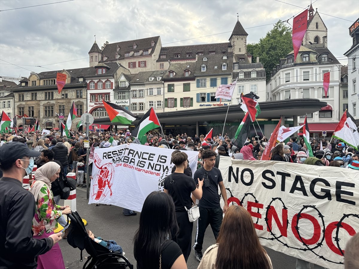 Barfüsserplatz Meydanı’nda toplanan binlerce gösterici, Avrupa Yayın Birliği’ne İsrail’in yarışmadan men edilmesi çağrısında bulundu. Protestocular, Rusya’nın 2022’de Ukrayna savaşı nedeniyle yarışmadan ihraç edilmesine karşın, İsrail’e benzer bir yaptırım uygulanmamasını “çifte standart” olarak niteledi.