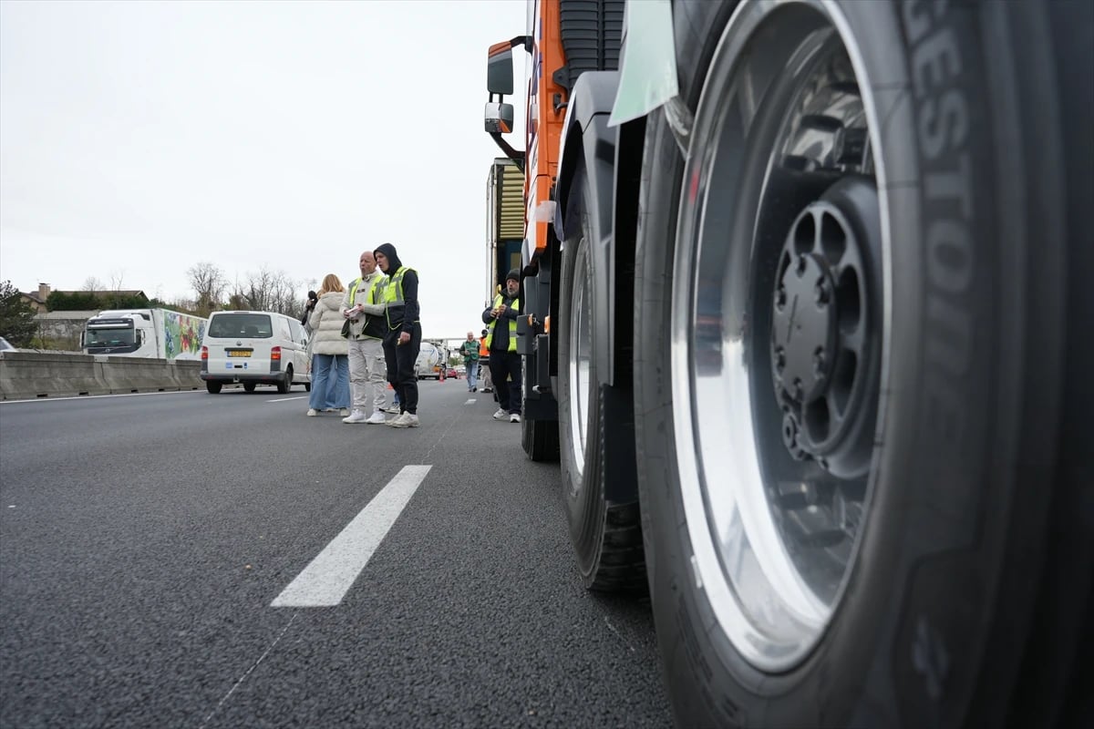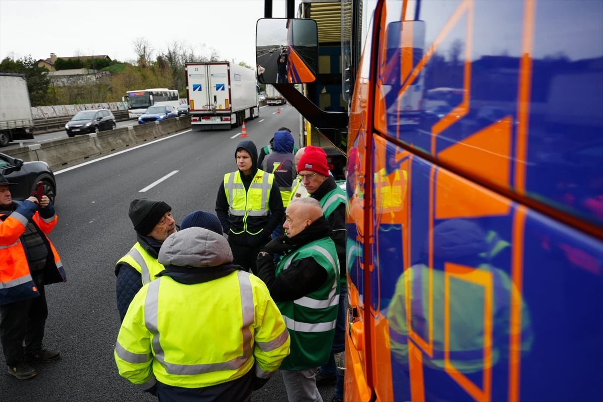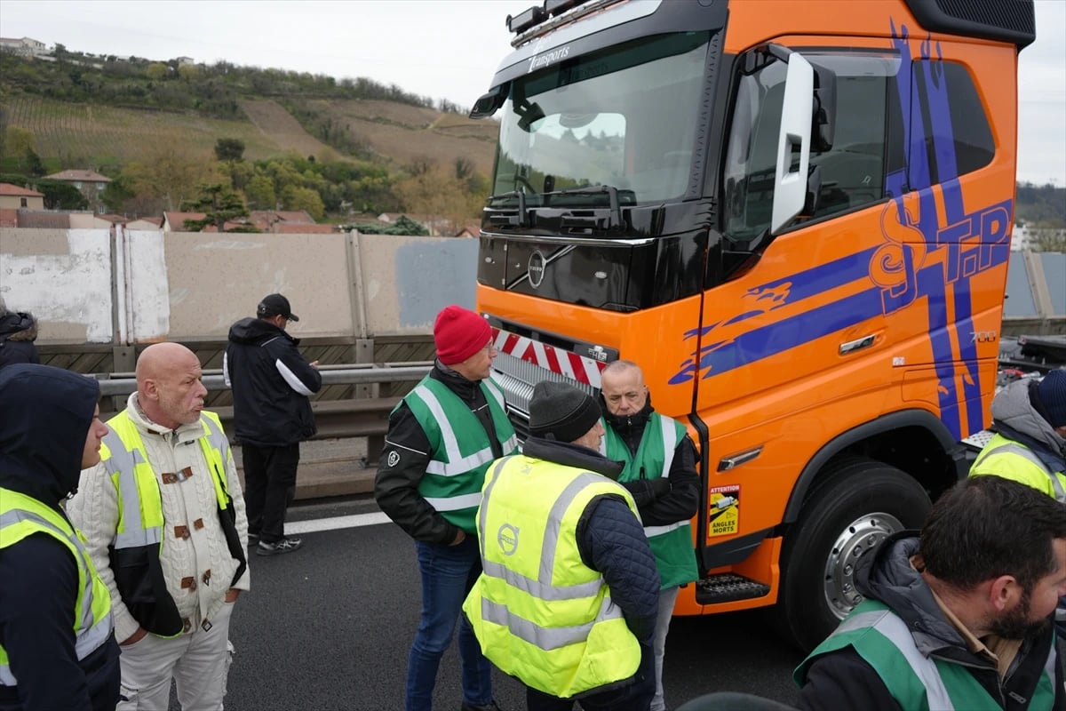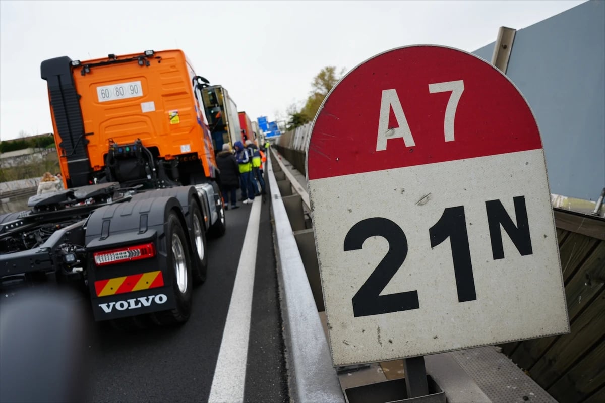 Avrupa Karayolu Taşımacıları Organizasyonu’nun çağrısıyla kamyon şoförleri, Lyon’un güneyindeki A7 otoyolunda trafiği yavaşlatarak akaryakıt fiyatlarındaki artışı protesto etti.