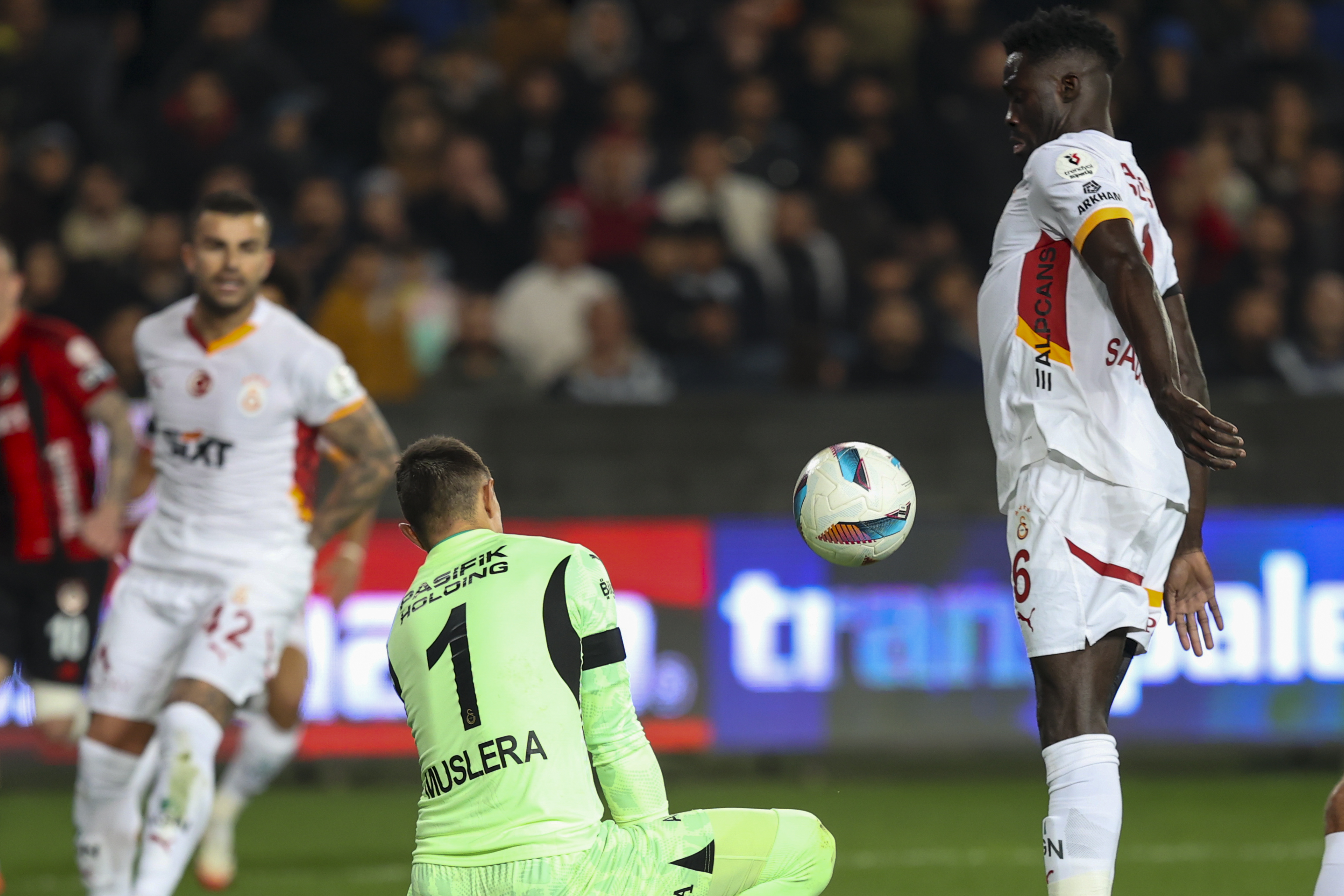 Tecrübeli eldiven Fernando Muslera, 82. dakikada, Abdülkerim Bardakcı ise 90+5. dakikada topu oyuna geç soktukları için sarı kart gördü.