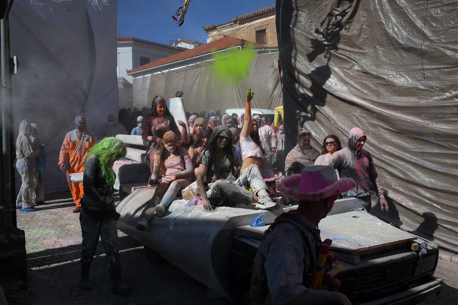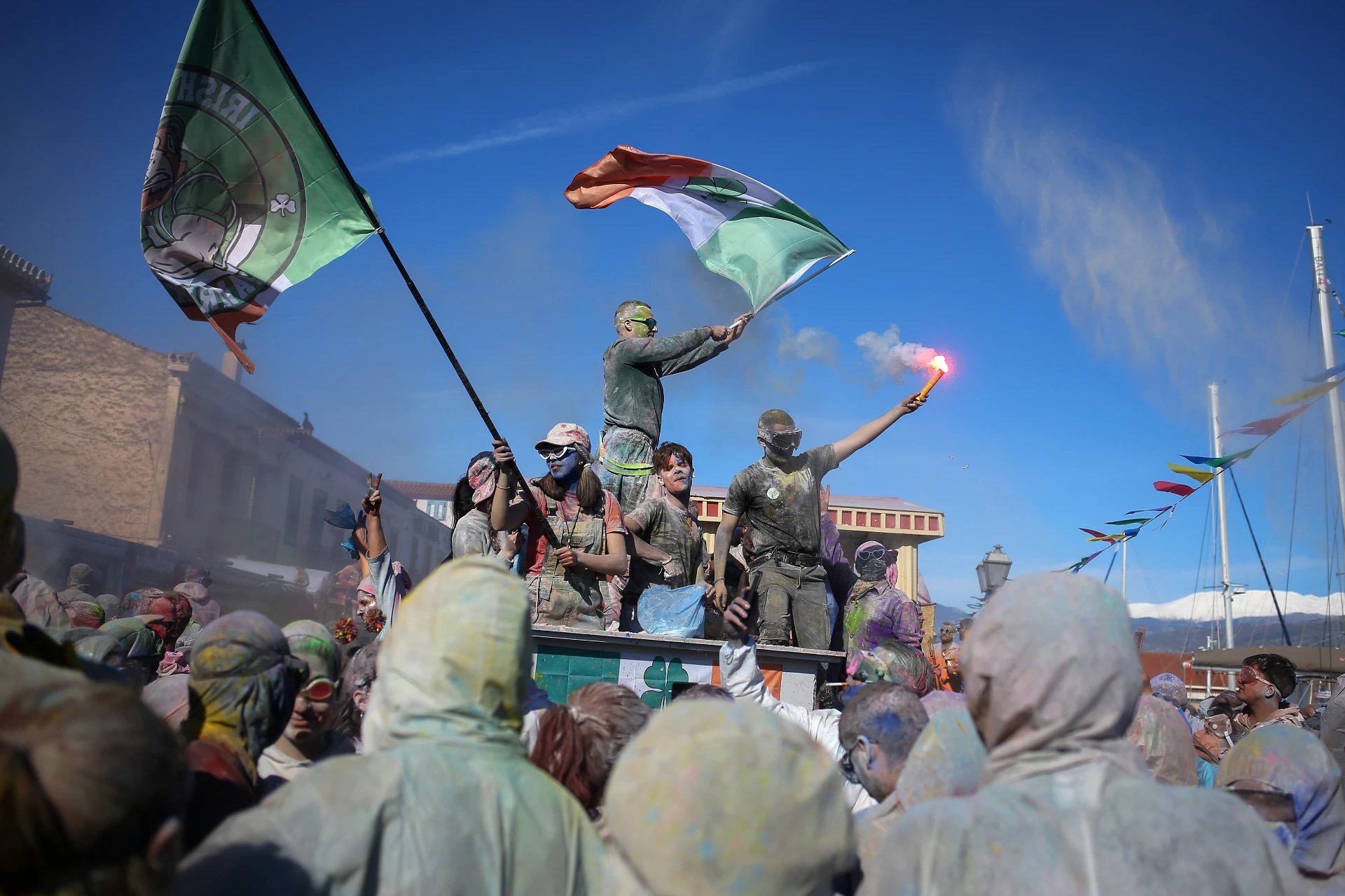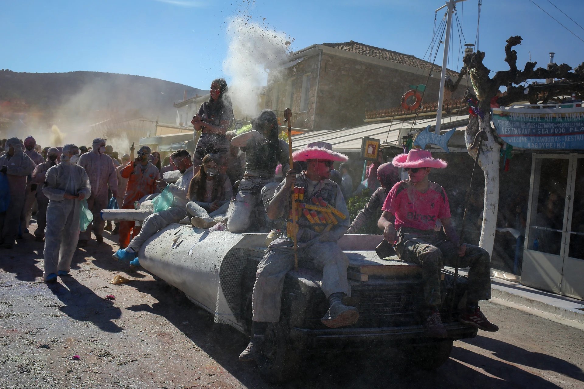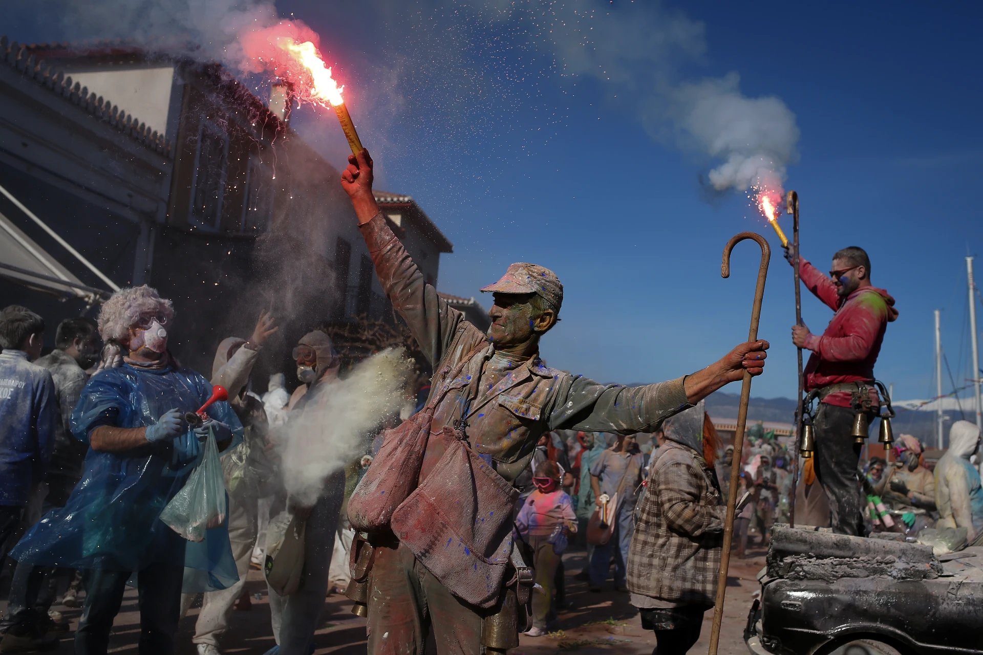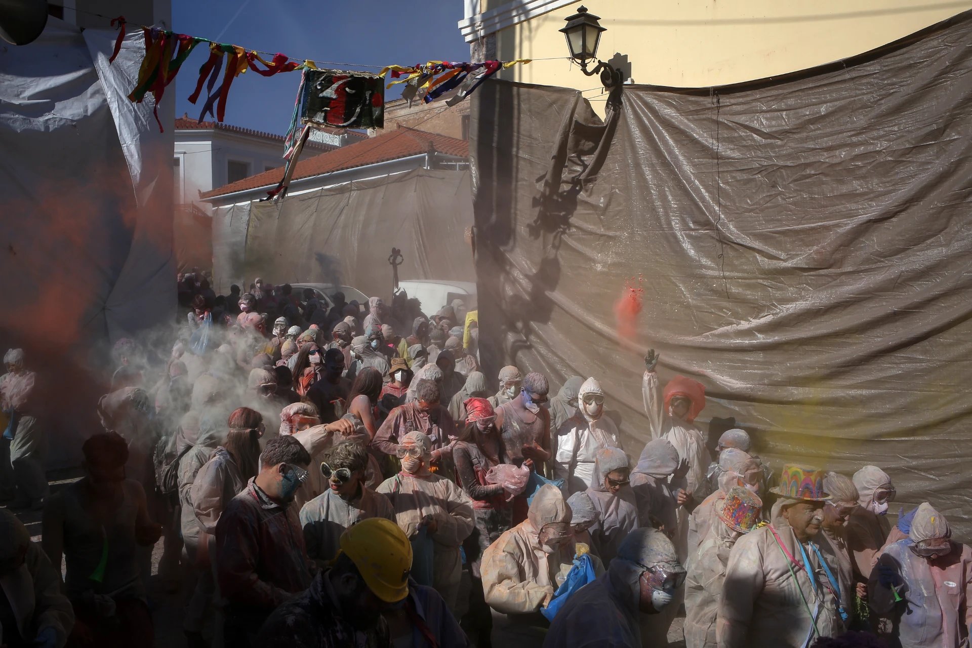 Yunanistan’ın masalsı kıyı kasabası Galaxidi, her yıl olduğu gibi bu yıl da gökyüzünün gökkuşağına boyandığı bir "un savaşına" sahne oldu.