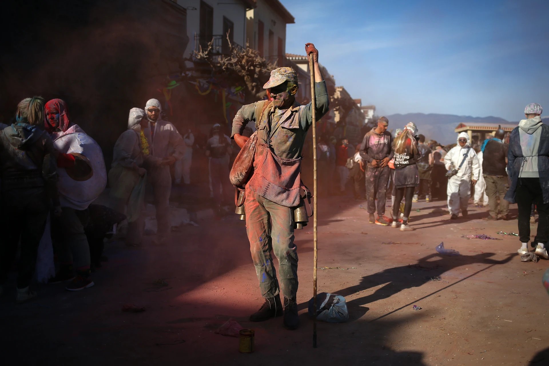 Un savaşı sadece un fırlatmaktan ibaret değil. Kasabanın dar sokaklarında çalınan geleneksel çalgılar ve flütler eşliğinde halk oyunları oynanıyor.