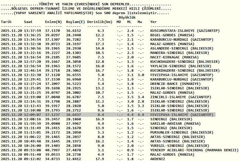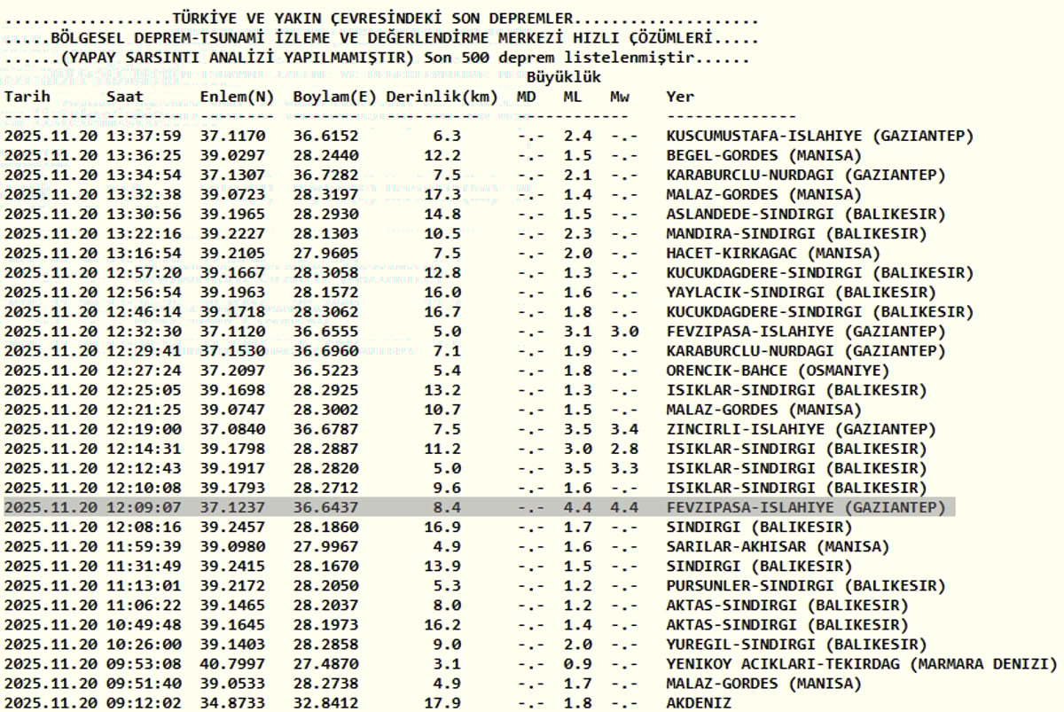 Gaziantep depremle sallandı! Osmaniye'de de hissedildi | 20 Kasım AFAD ve Kandilli Rasathanesi verileri