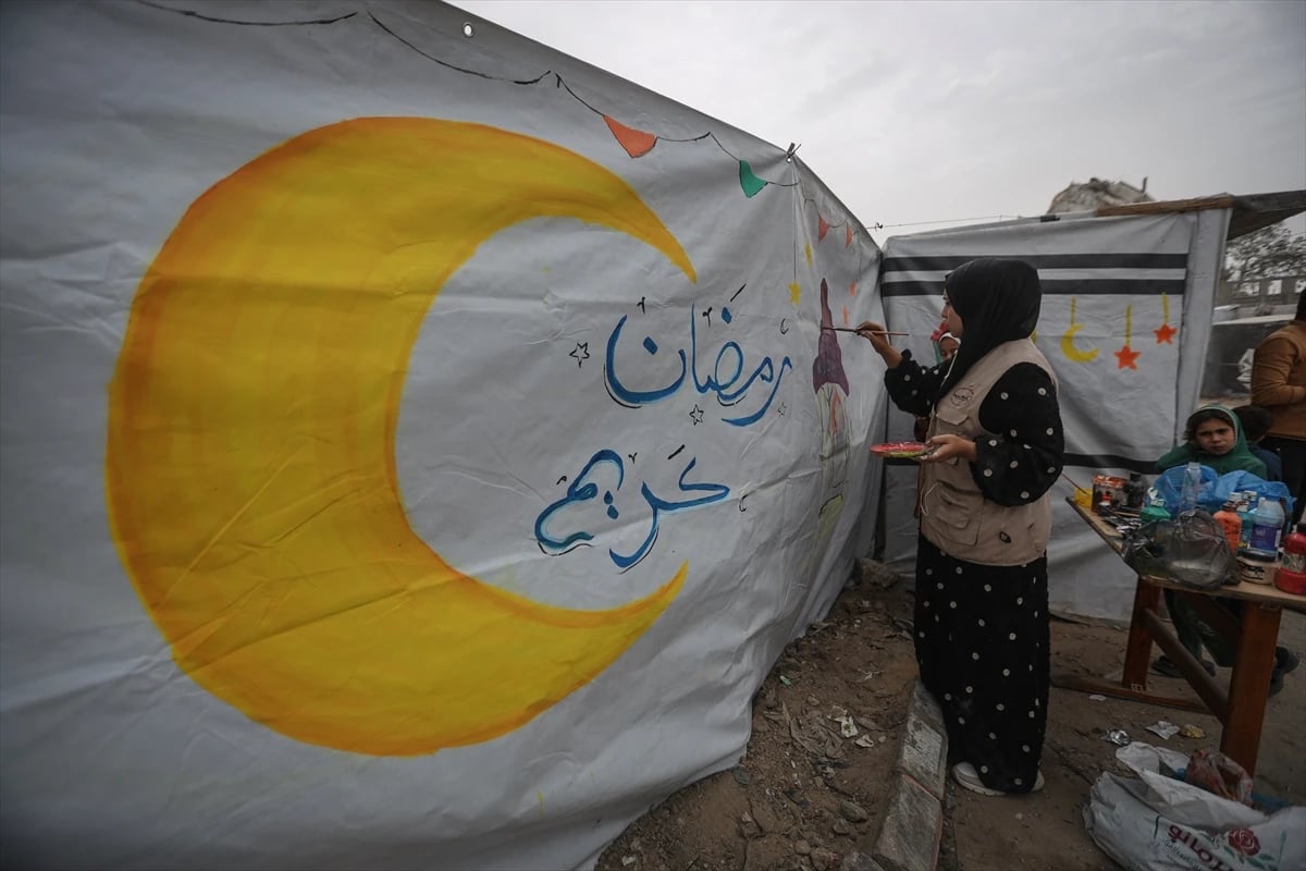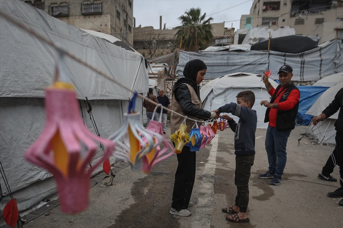Gazze kentinin Rimal Mahallesi’nde Kanaan Eğitim ve Kalkınma Enstitüsü öncülüğünde düzenlenen etkinlikte çocuklar, fenerler yapıp sokakları süsleyerek ramazan coşkusunu yaşadı. Yerinden edilen ailelerin çadırlarına çizilen resimler, savaşın gölgesinde umut mesajı verdi.
