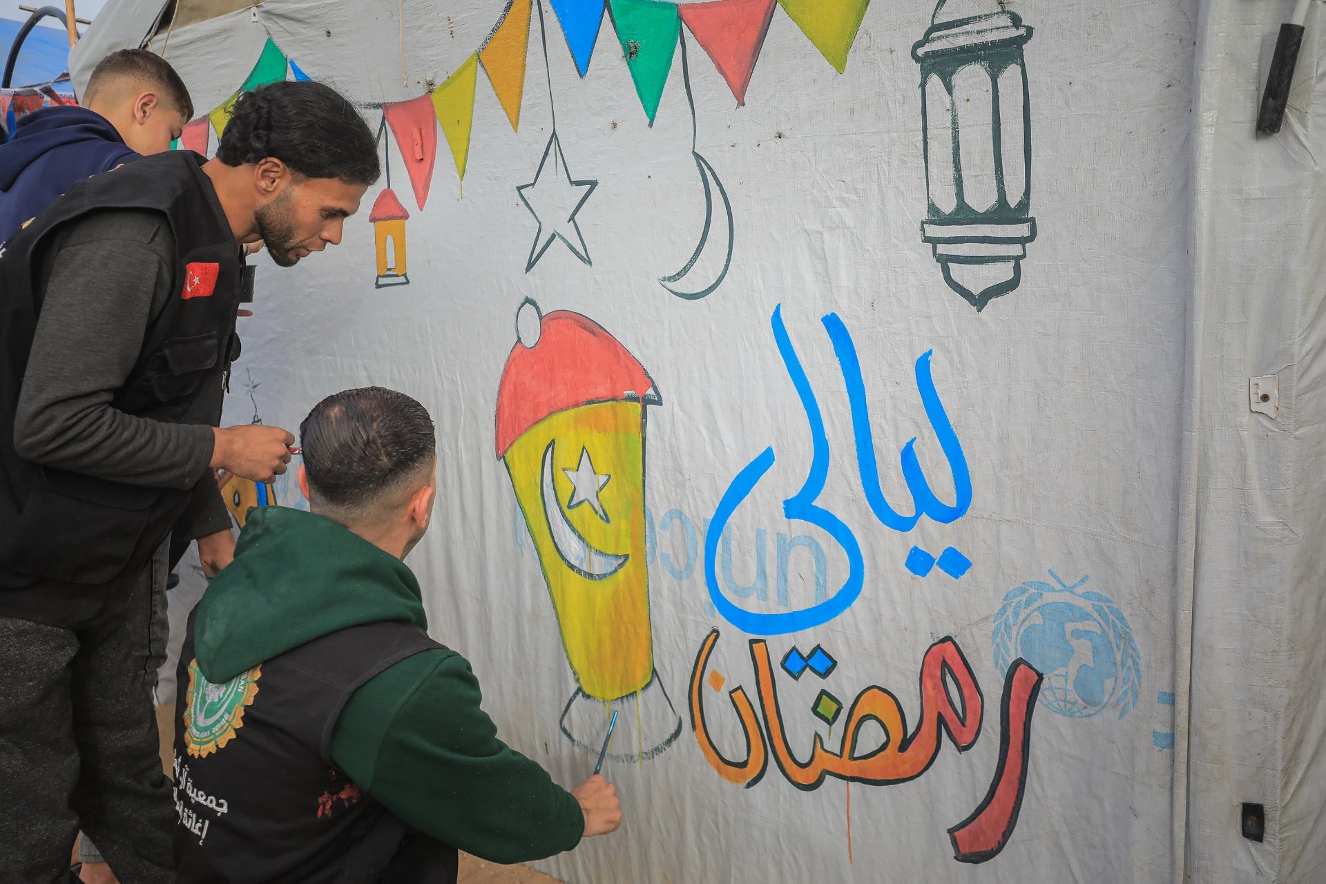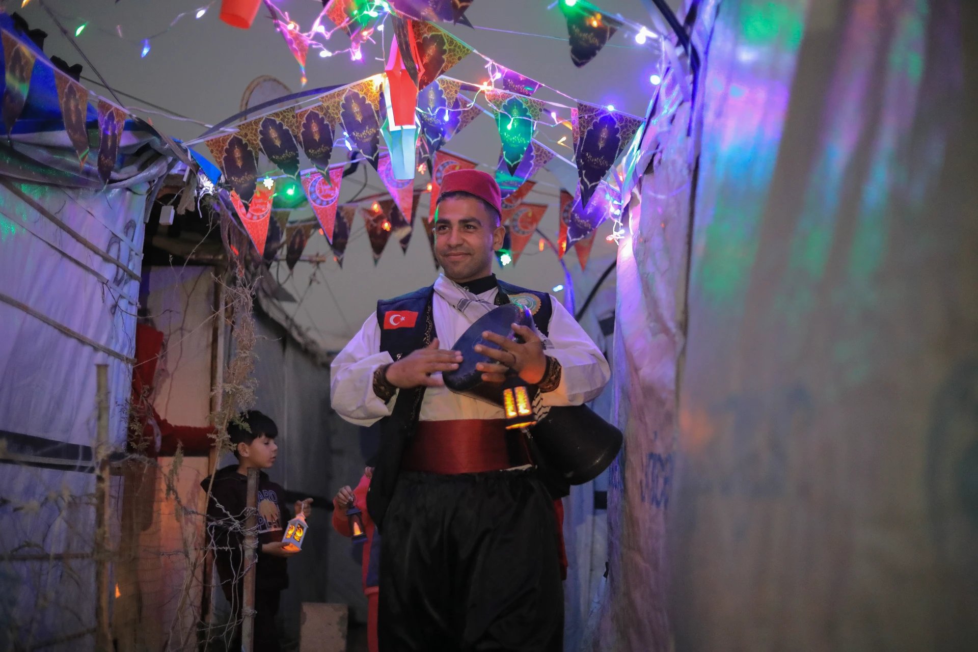 Gazze’nin Bureyc bölgesindeki çadır kentte, yerinden edilmiş çocuklar için Ramazan etkinliği düzenlendi. Savaşın zorlu şartlarına rağmen çocuklar, atölye çalışmaları ve fenerlerle moral buldu.
