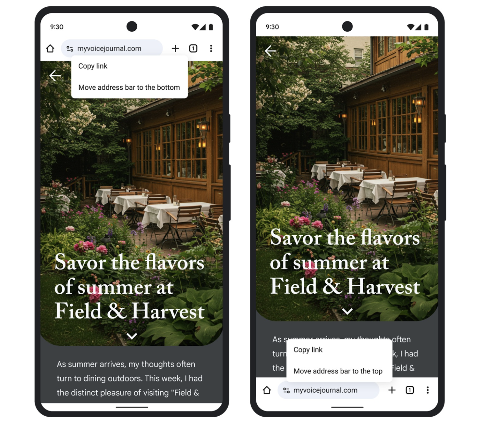 Bu kapsamda, Android sürümüne gelen son güncelleme ile iPhone kullanıcılarının Safari'den aşina olduğu bir tasarım özelliği sunuldu. Artık Android kullanıcıları da adres çubuğunu ekranın alt kısmına taşıyabilecek.