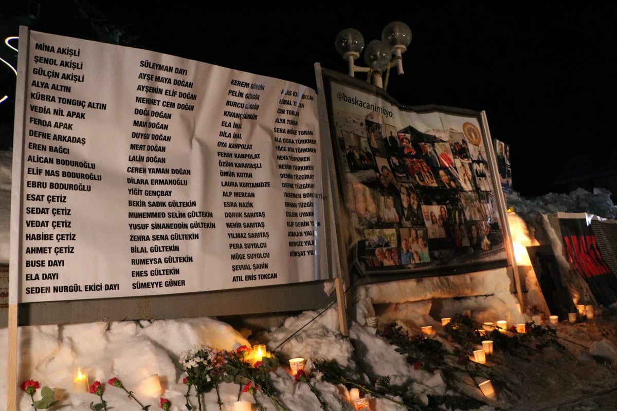Törenin yapıldığı Kartalkaya'da dondurucu soğuğa rağmen acı ilk günkü tazeliğini korudu. Otel önüne asılan pankartlarda hayatını kaybedenlerin fotoğrafları yer alırken, aileler otel binasının "yanlışların ve kötülüklerin sembolü" olarak kalması gerektiğini dile getirdi.