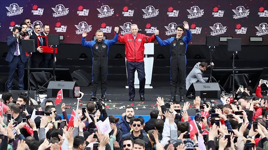 Bugün bu hayalleri gerçeğe dönüştürme yolunda önemli bir adım daha atıyoruz. Mayıs ayında başlattığımız süreçte bir asil, bir yedek olmak üzere 2 uzay yolcumuzu belirledik. Öncelikle uzay yolcusu olmak üzere başvuruda bulunan binlerce vatandaşımıza teşekkür ediyoruz. Binlerce talipli arasından uzay yolcusu olma hakkını kazanan arkadaşlarımızı da tebrik ediyoruz. Türkiye'nin insanlı ilk uzay görevine çıkacak arkadaşımız Uluslararası Uzay İstasyonu'nda 14 gün kalacak.