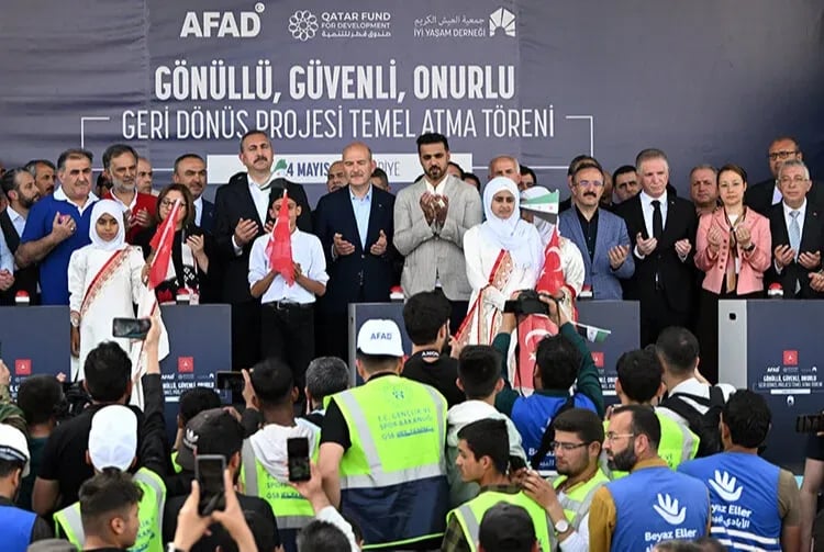 Cerablus’ta geri dönüş projesi temel atma töreni düzenlendi: Suriye'nin kuzeyinde inşa edilecek 240 bin kalıcı konut için Cerablus'ta "Gönüllü, Güvenli, Onurlu Geri Dönüş Projesi Temel Atma Töreni" düzenlendi.