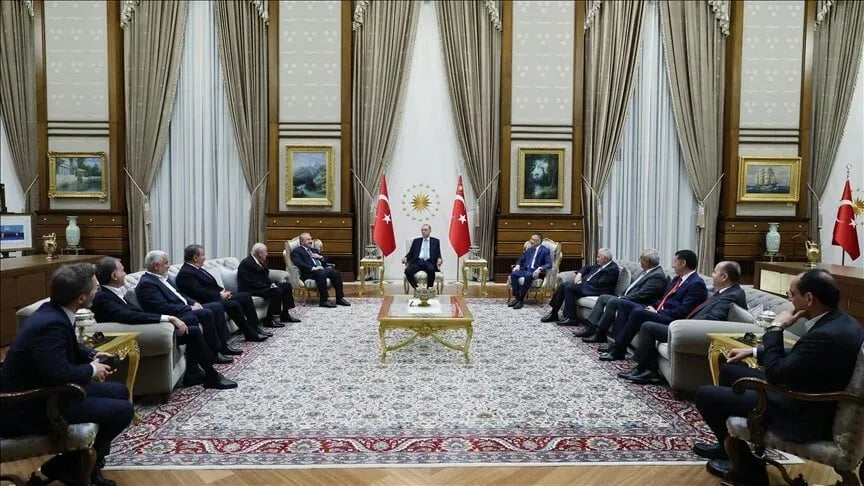 - Erdoğan, Cumhurbaşkanlığı Külliyesi'nde vatandaşlara hitabı öncesinde, MHP Genel Başkanı Devlet Bahçeli, BBP Genel Başkanı Mustafa Destici ile Cumhur İttifakına desteğini açıklayan DSP Genel Başkanı Önder Aksakal, HÜDA PAR Genel Başkanı Zekeriya Yapıcıoğlu ve Sinan Oğan ile bir araya geldİ.