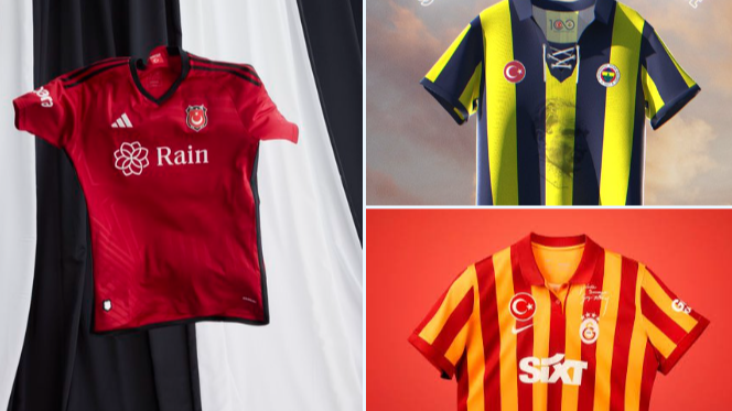 ⚽ Beşiktaş, Fenerbahçe ve Galatasaray’ın; Cumhuriyet’in 100. yılına özel olarak hazırlanan formaları.