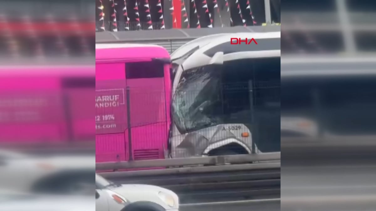 - Beylikdüzü'nde Haramidere Durağı'nda yolcu alan bir metrobüse arkadan gelen başka bir metrobüs çarptı.