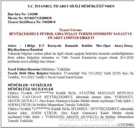 Büyükçekmece Belediye Başkanı’nın yeğeni Fatih Akgün ile birlikte, 1 milyon 200 bin TL sermayeli “Büyükçekmece Petrol Gıda İnşaat Turizm Otomotiv Sanayi ve Ticaret Limited Şirketi”ni kurdu.