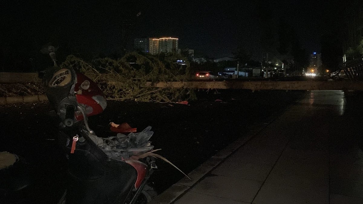 Olumsuz hava koşulları ulaşımda da tehlikeli anların yaşanmasına zemin hazırlarken, İskenderun Ziraat Parkı civarında korkutucu bir kaza meydana geldi. Yolda seyir halinde olan bir motosikletin üzerine fırtınanın şiddetiyle kökünden sökülen dev bir ağaç devrildi.