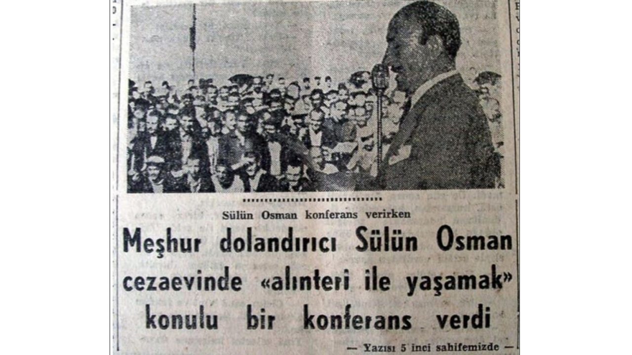 Neyse ki bu güçlü savunmasına rağmen hakim gözünün yaşına bakmadı ve Sülün Osman’ı cezaevine yolladı. Kesin değil ama o dönem bir gazetede yayımlanan habere göre ünlü dolandırıcı Sülün Osman hapishanedeyken diğer mahkumlara Alınteri ile Yaşamak konulu bir konferans vermiştir.