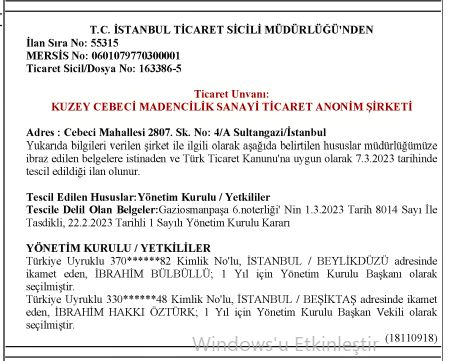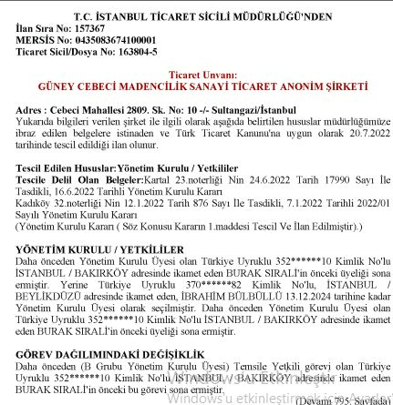 Güney Cebeci Madencilik Sanayi Ticaret A.Ş., 16 Haziran 2022 tarihli yönetim kurulu kararıyla görev süresi sona eren Burak Sıralı’nın yerine Bülbüllü’yü yönetime dahil etti.