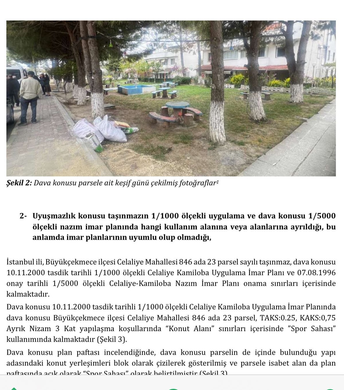 İmar rantında İBB-Büyükçekmece dayanışması… Büyükçekmece Belediyesi, SGK borçlarını ödemek için 37 yıllık parkı 'Konut arsası' olarak satışa çıkardı. Site sakinleri parkın imarını değiştiren İBB’yi mahkemeye verdi. Mahkemenin görevlendirdiği bilirkişi vatandaşı haklı buldu.