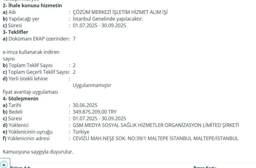 - 19 Haziran 2025’te İBB Halkla İlişkiler Müdürlüğü’nün düzenlediği pazarlık usulü ihaleyi GSM Medya Sosyal Sağlık Hizmetleri kazandı.