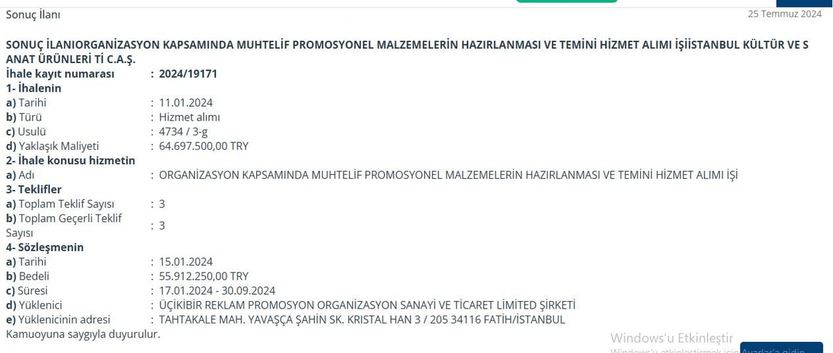 - Hüseyin Ekrem Fidan’ın sahibi olduğu Üçikibir Reklam Promosyon, kurulduktan 2 ay sonra ilk ihalesini aldı.