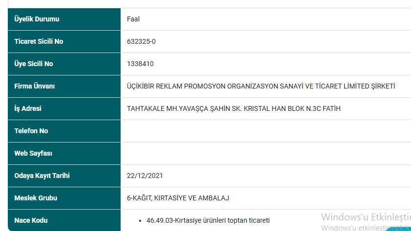 Tahtakale’de kurulan Üçikibir Reklam Promosyon şirketi 21 Aralık 2021 tarihinde İstanbul Ticaret Odasına kaydını yaptırdı. İş alanı kâğıt, kırtasiye ve ambalaj olan şirket, kurulduktan iki ay sonra İBB'den ihale almaya başladı.