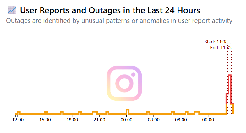 Outage report internet sitesinde yapılan açıklamada instagram'da saat 11.08 ile 11.35 arasında bir kesinti olmuş olabileceği duyuruldu.