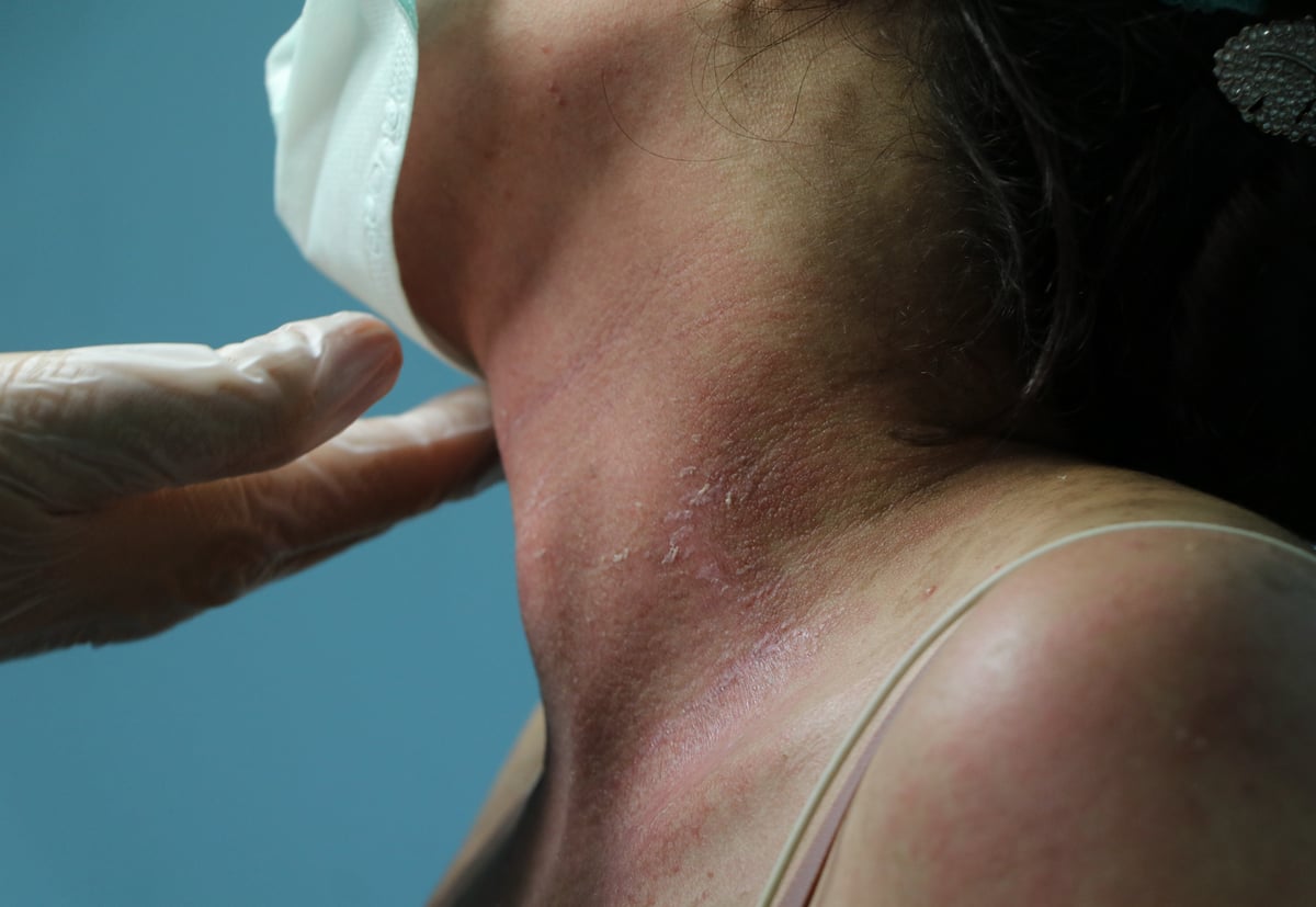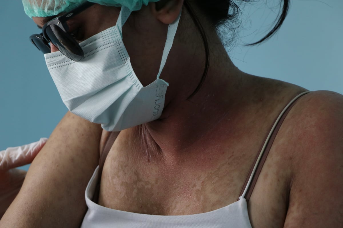 Prof. Dr. Özkol, "Lekeden kurtulayım derken daha ciddi lekelerle karşılaşılıyor. Hastanın özellikle boyun ve kollarındaki yaralarından kaynaklı iz kalabilir. Şu an nemlendirici ve koruyucu kremlerle tedavi uyguluyoruz. Tüm halkımız bilsin ki; özellikle yurt dışından getirilen kremleri lütfen yüzünüze sürmeyin.