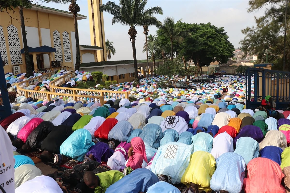 Afrika ülkelerinden Kamerun'da Müslümanlar, Ramazan Bayramı dolayısıyla camilere akın ederek bayram namazını eda etti. Kamerun'un başkenti Yaounde'nin en büyük camilerinden Yaounde Merkez Camisi'nde toplanan cemaat, yoğun katılımla bayram namazını kıldı.