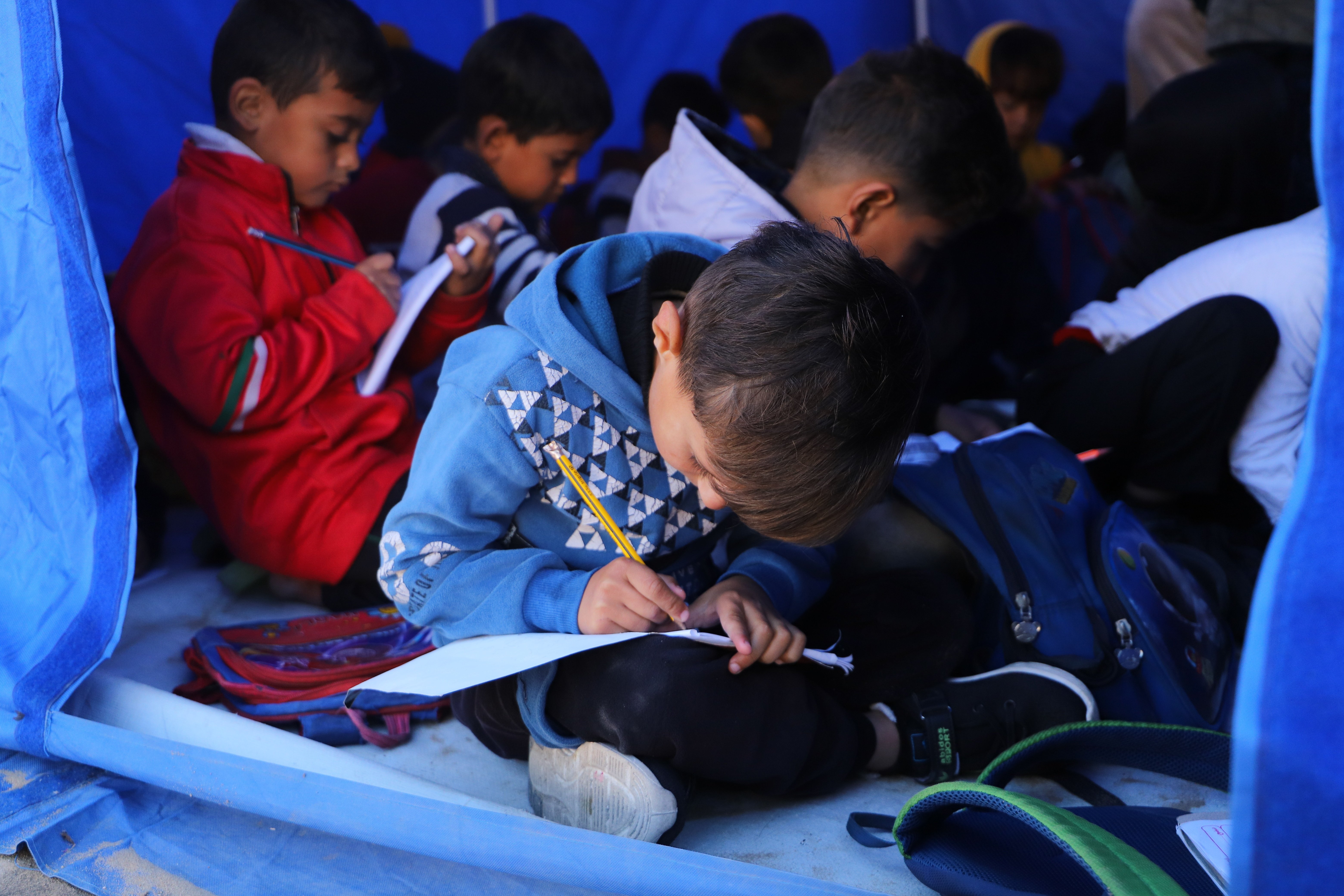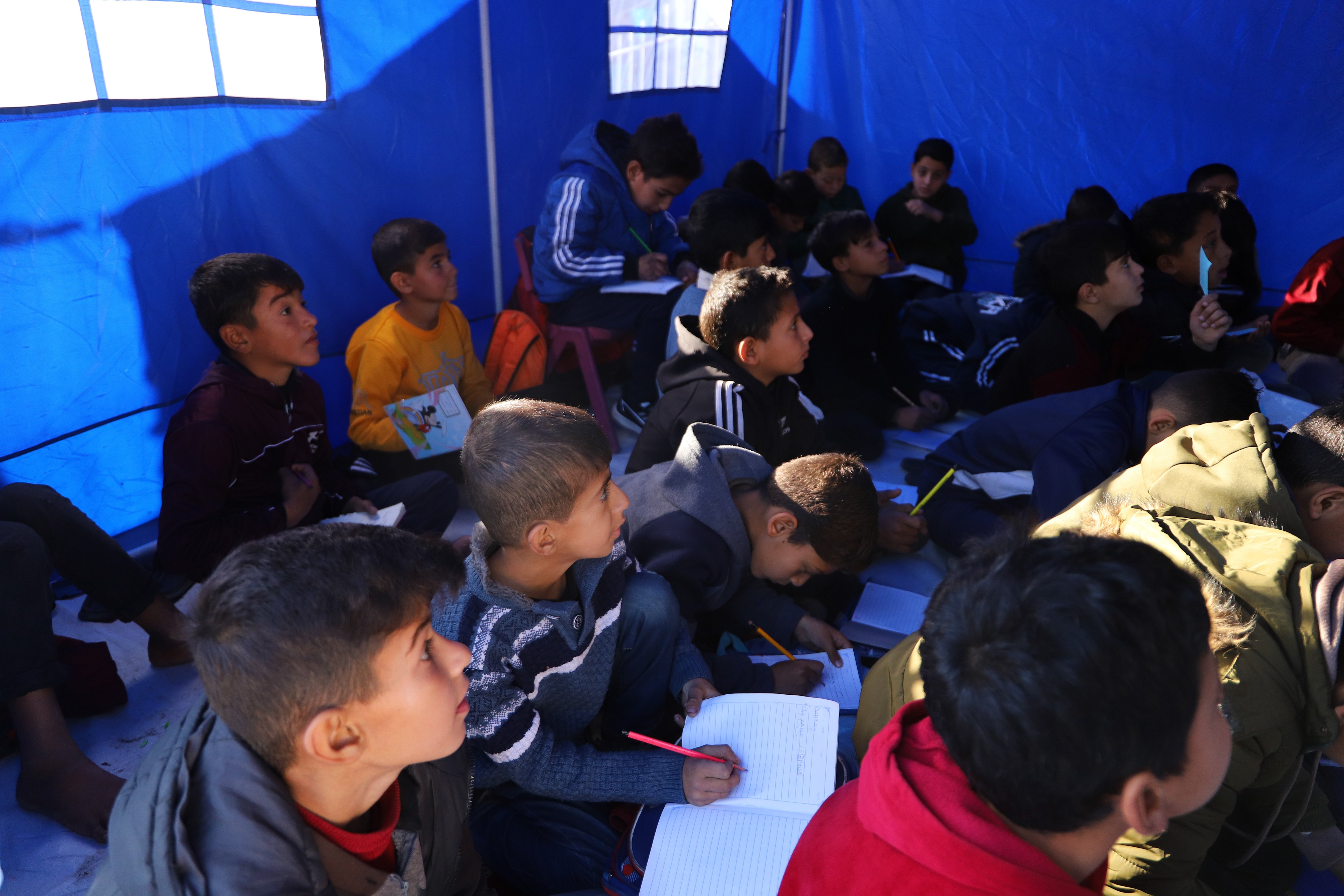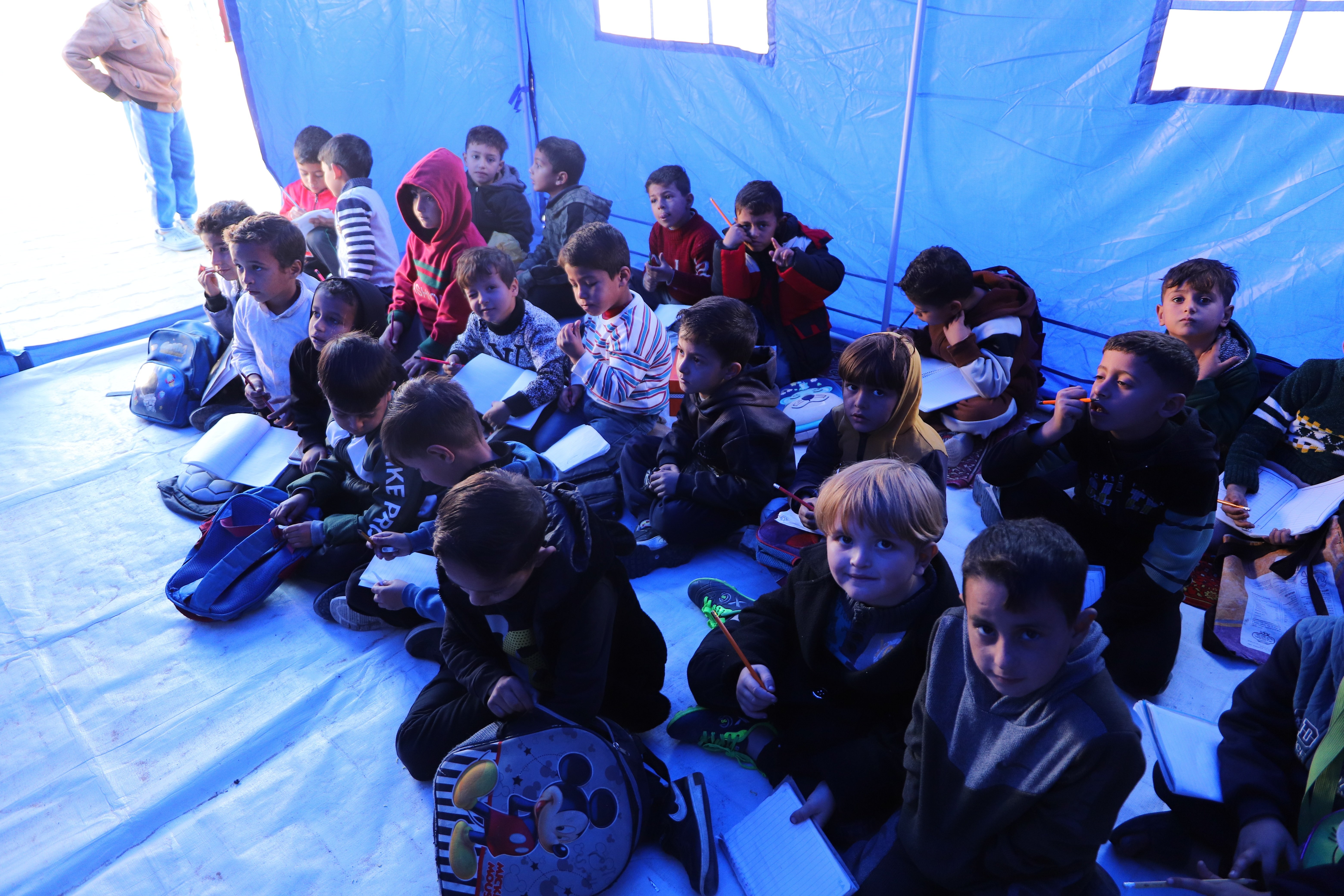Çadırlarda Arapça, İngilizce ve matematik gibi temel dersler verilerek, çocukların okuldan uzak kaldıkları süreçte eğitim açıklarının kapatılması hedefleniyor.