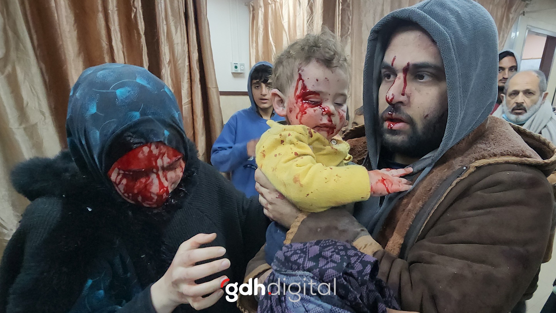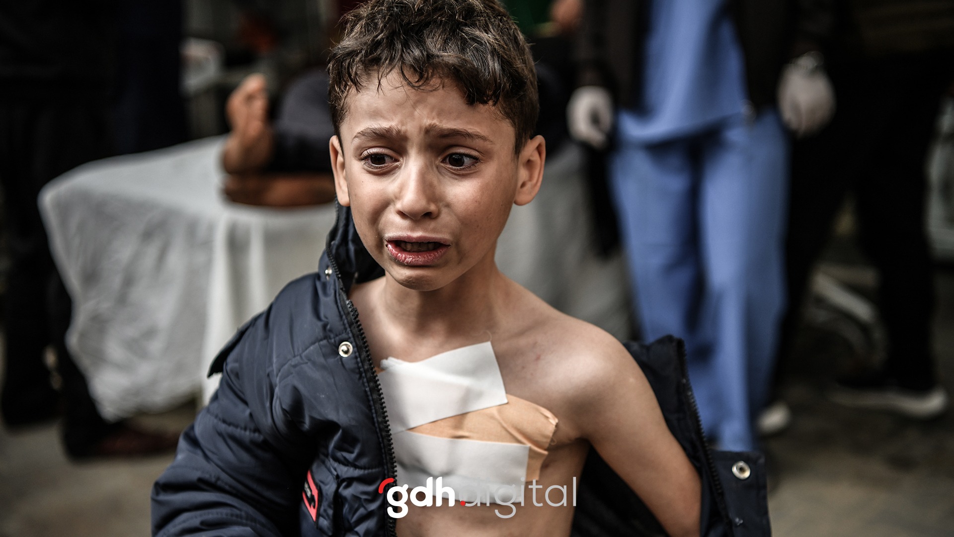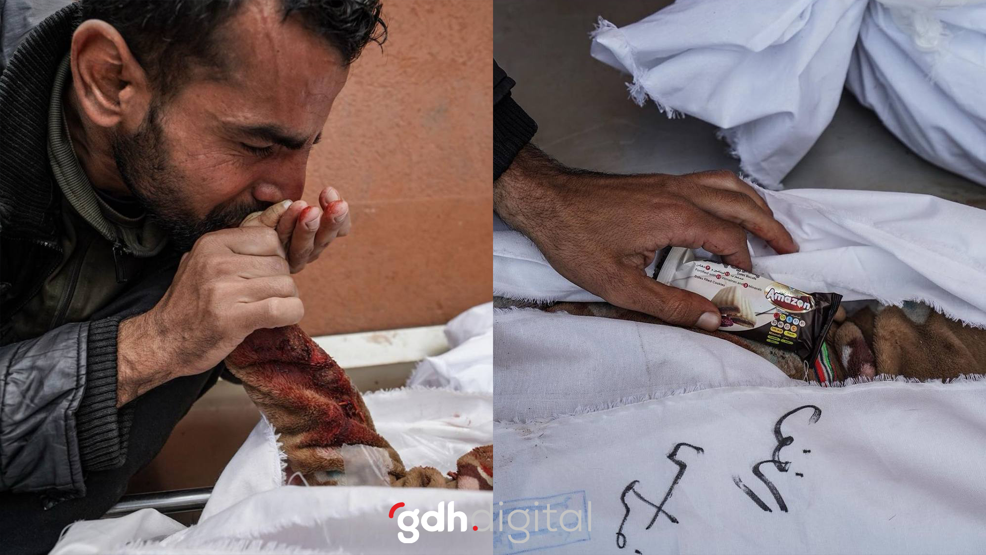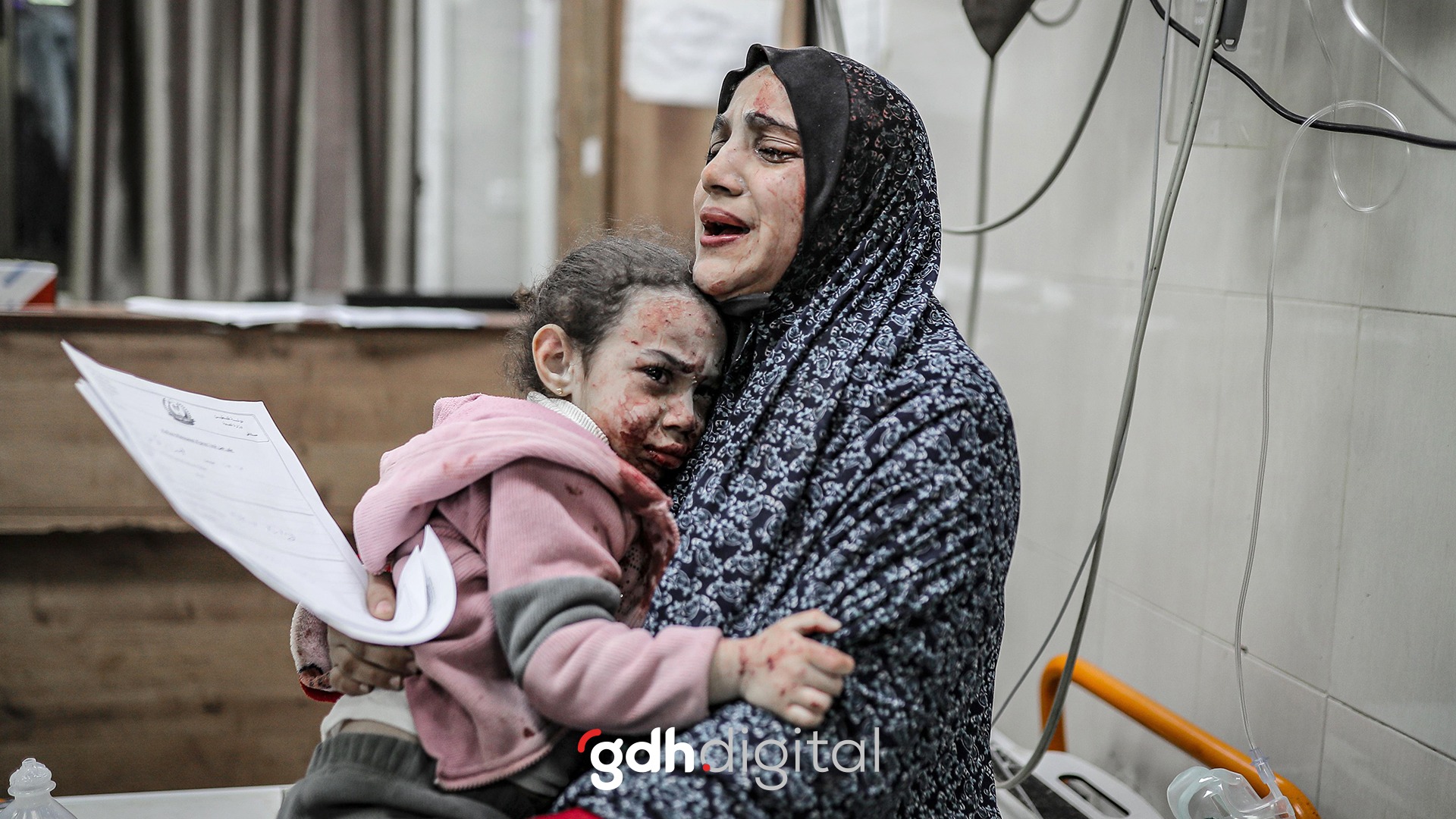 Yaralı bir baba, kendi yaralarına aldırmadan, çocuğunu hastaneye yetiştirmeye çalışıyor. Gazze'de her gün benzer acılar yaşanıyor.