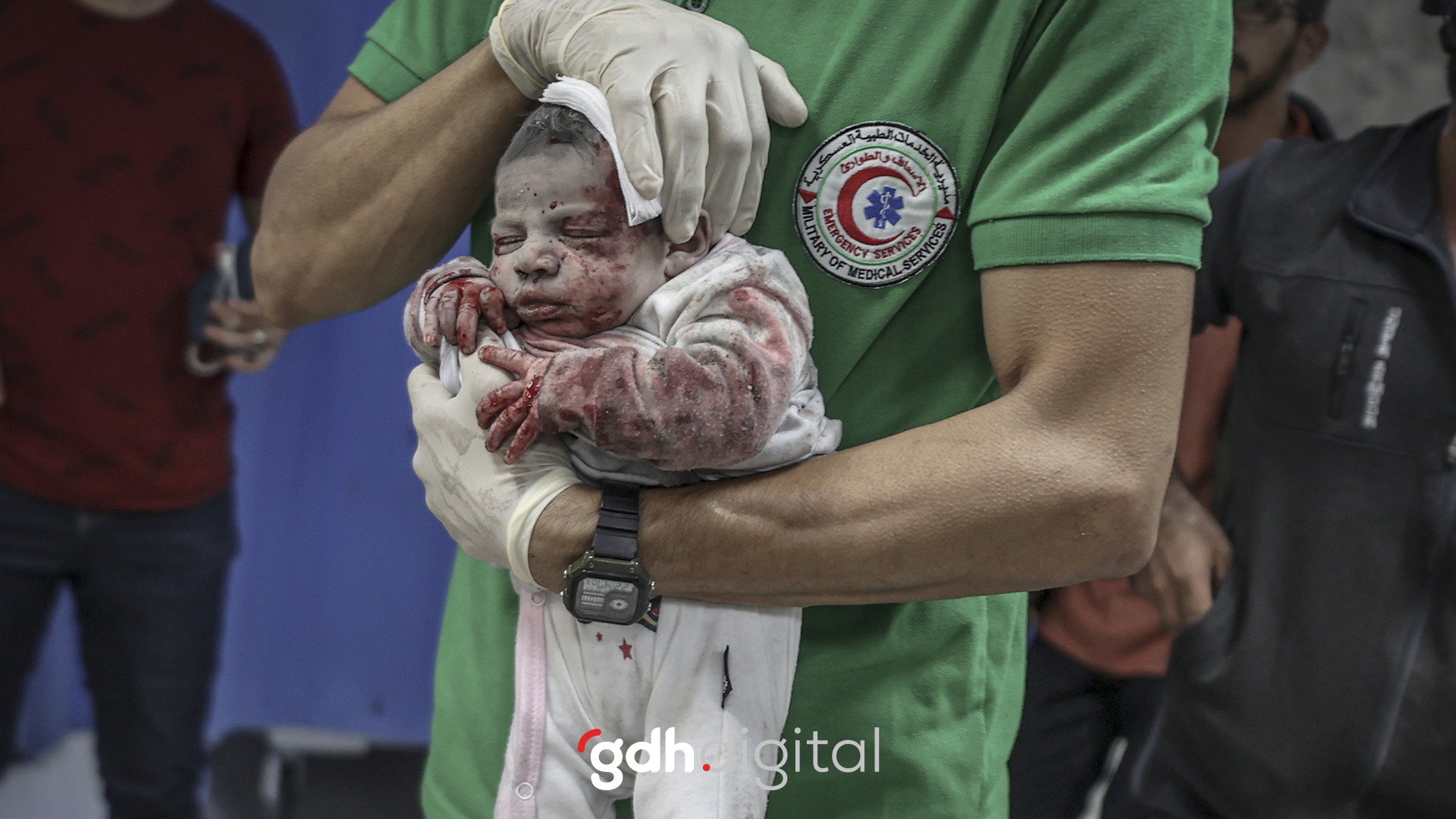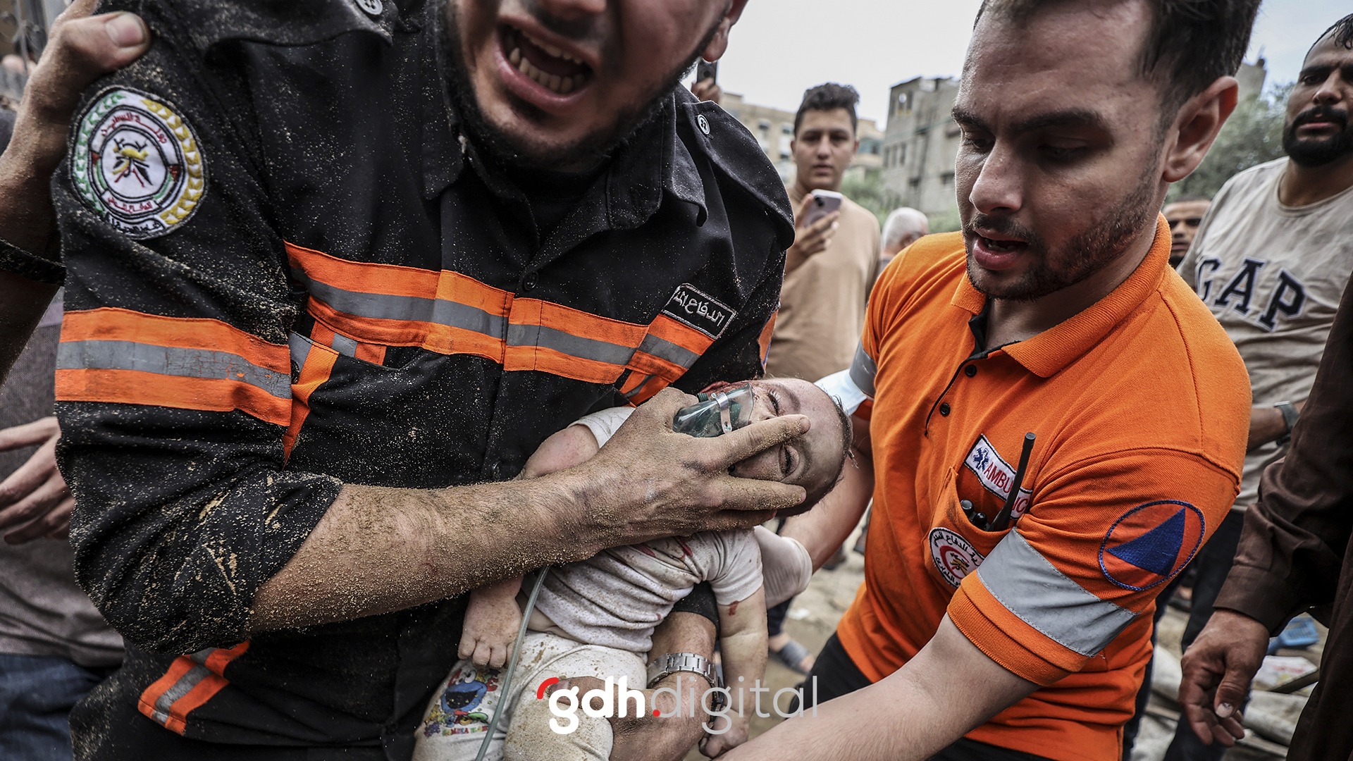 Enkazdan çıkarılan çocuğun yaşadığı şok ve onun kim olduğunu tespit etmeye çalışan sağlık çalışanı. Gazze'de hastaneler, kimliği belirsiz yaralılar ve ölülerle dolu.