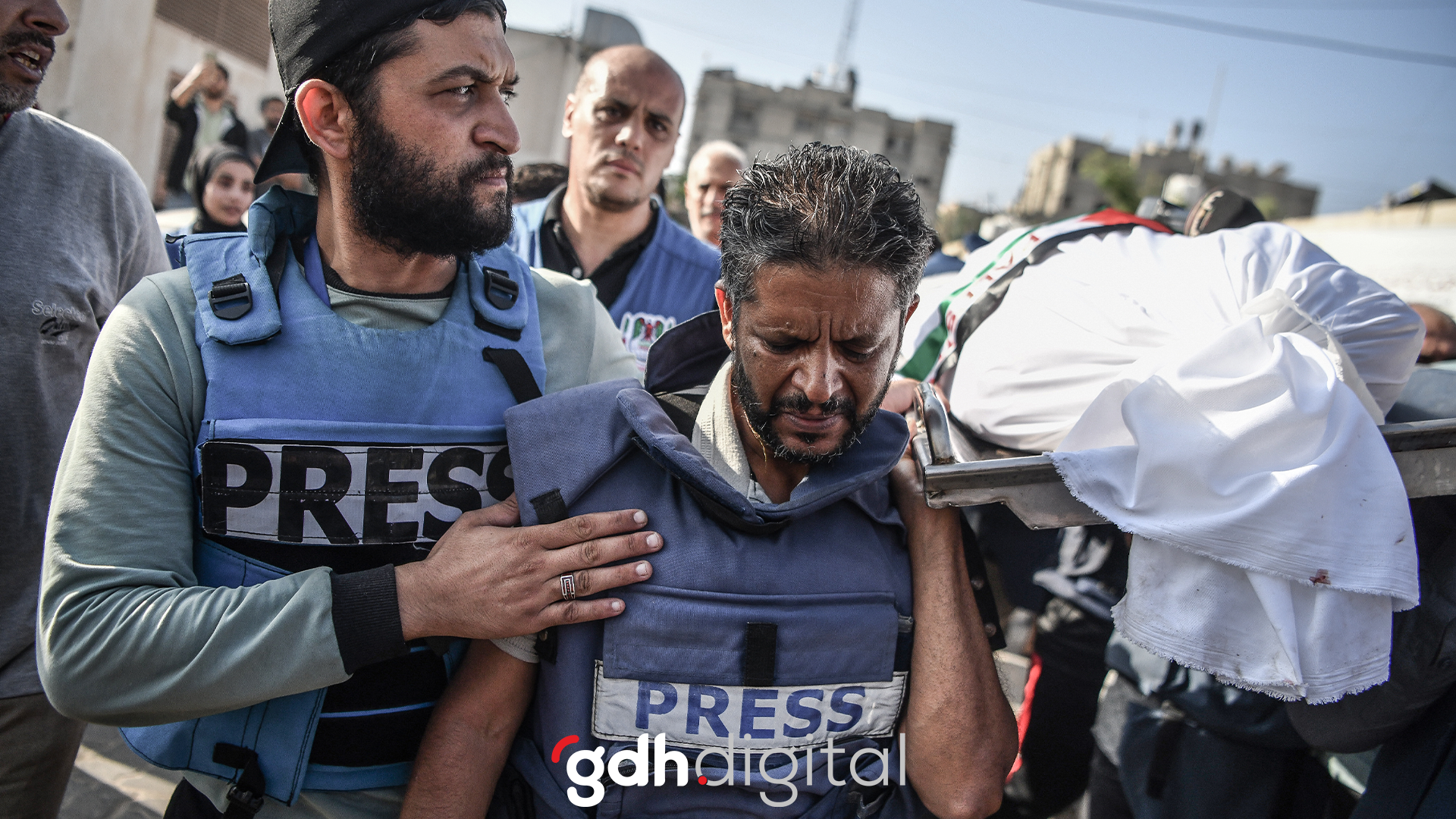 İsrail’in şehit ettiği çalışma arkadaşlarını veda eden gazeteciler.