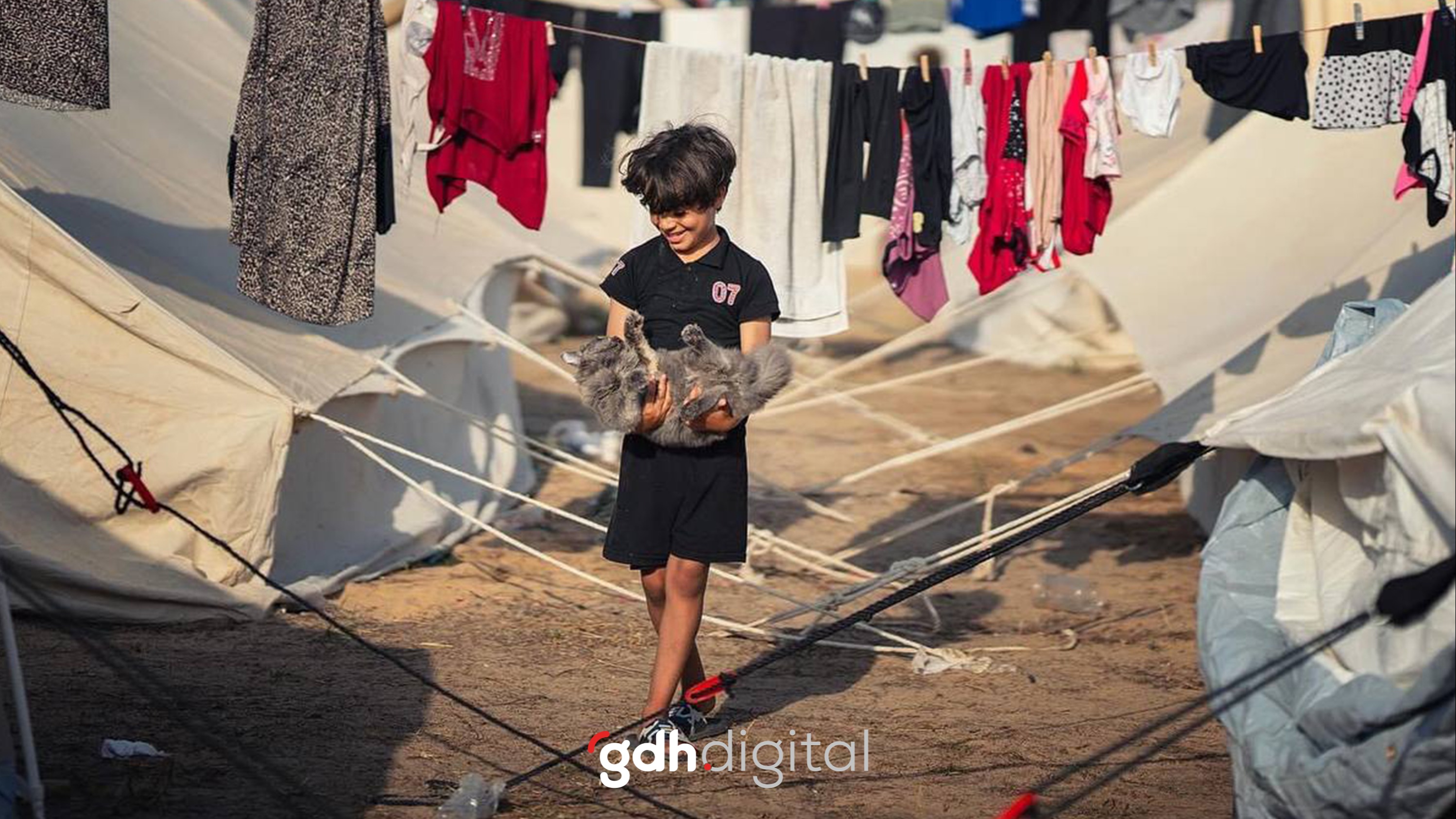 Her şeye rağmen tüm canlılara karşı vicdanını koruyan ve aslında Gazze halkının yaşama sevincini gösteren Gazzeli çocuk.
