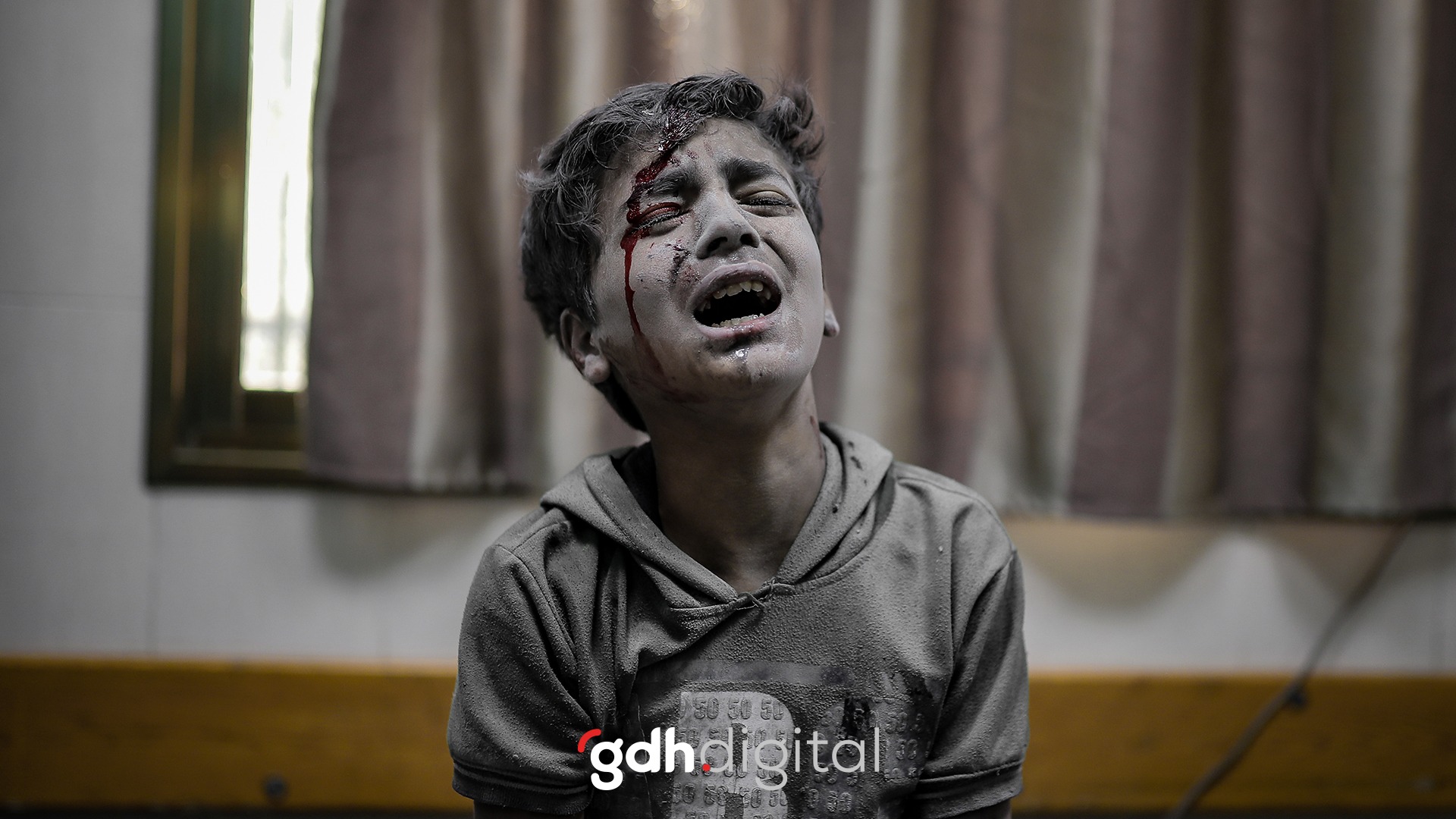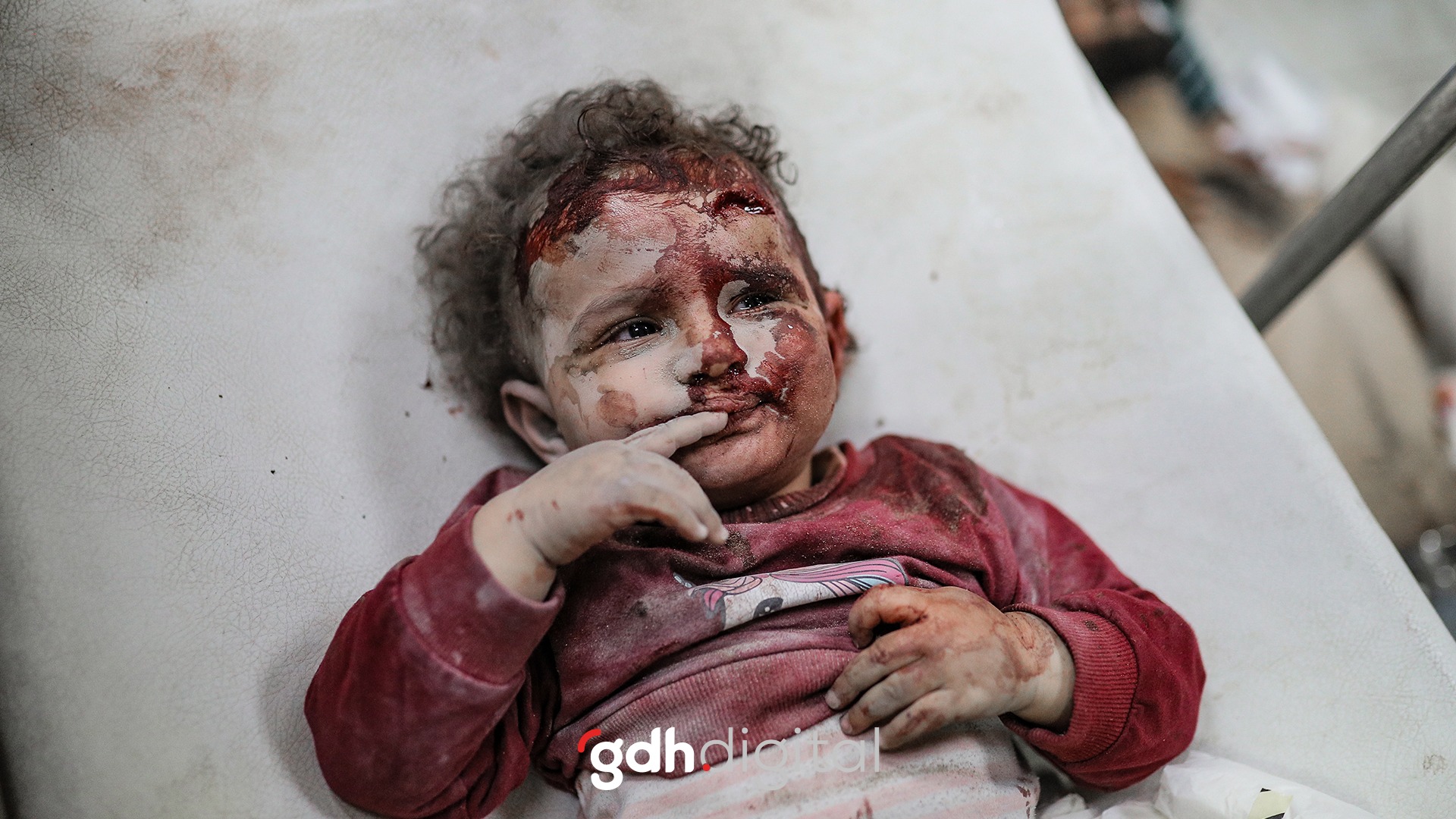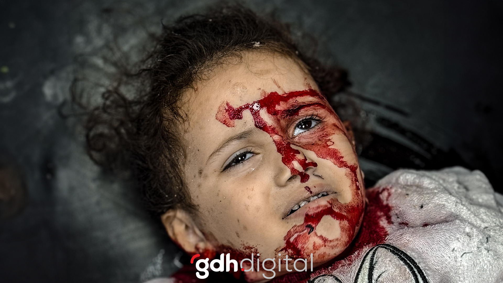 Yaralanan çocuğun korku ve acı dolu bakışları ve tüm bunları seyreden duyarsız bir dünya.