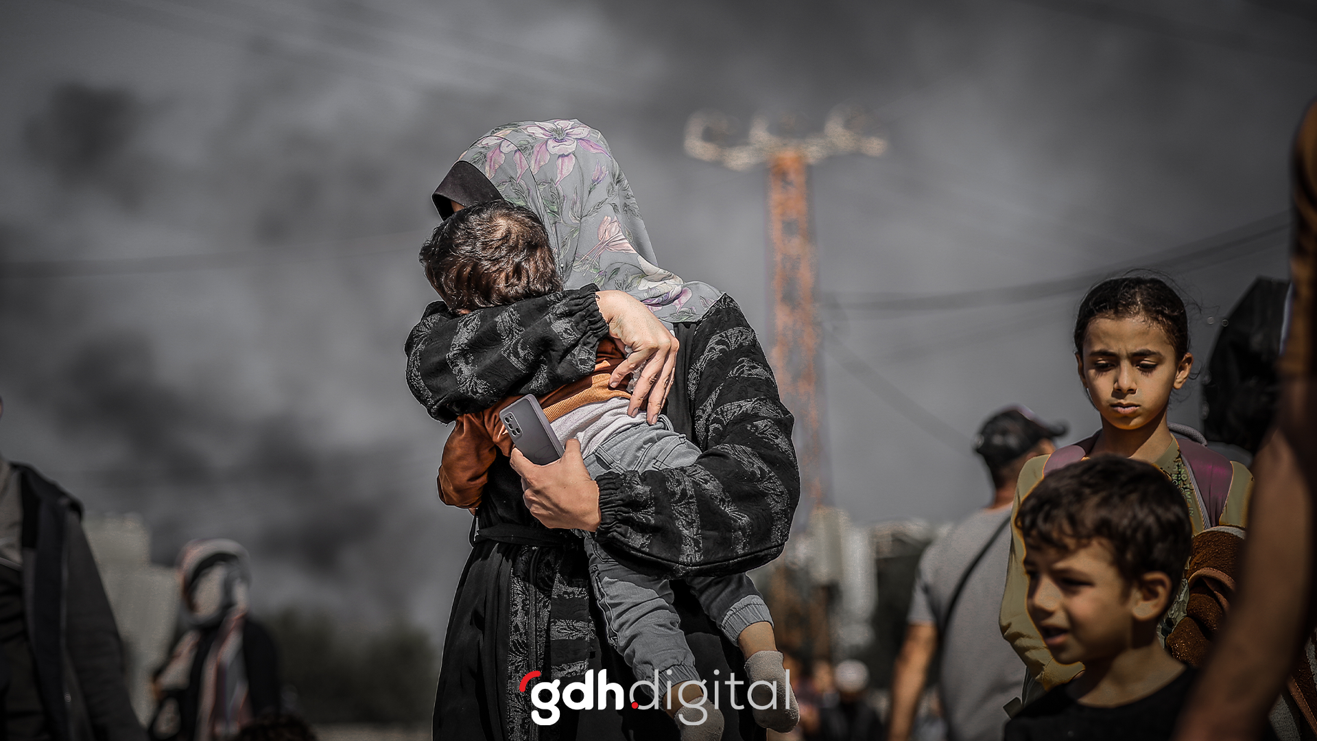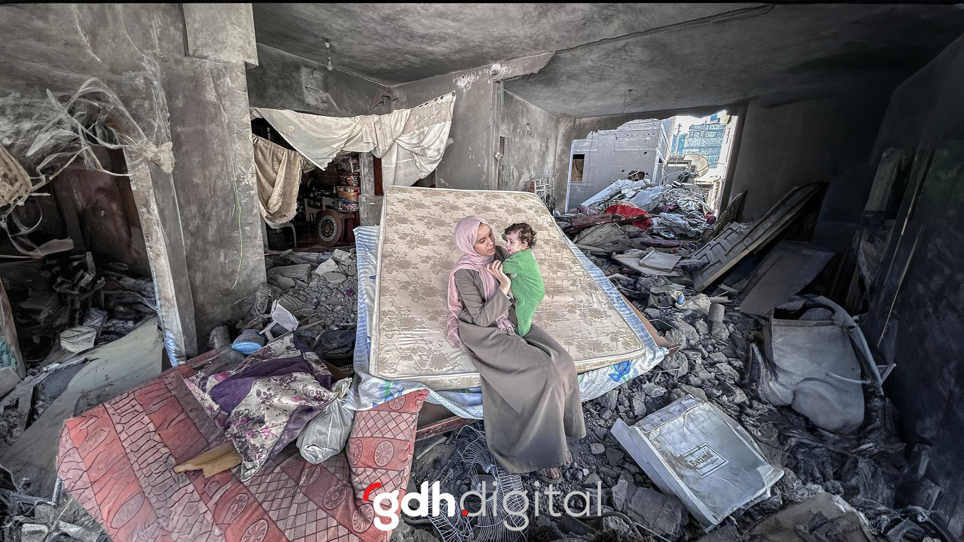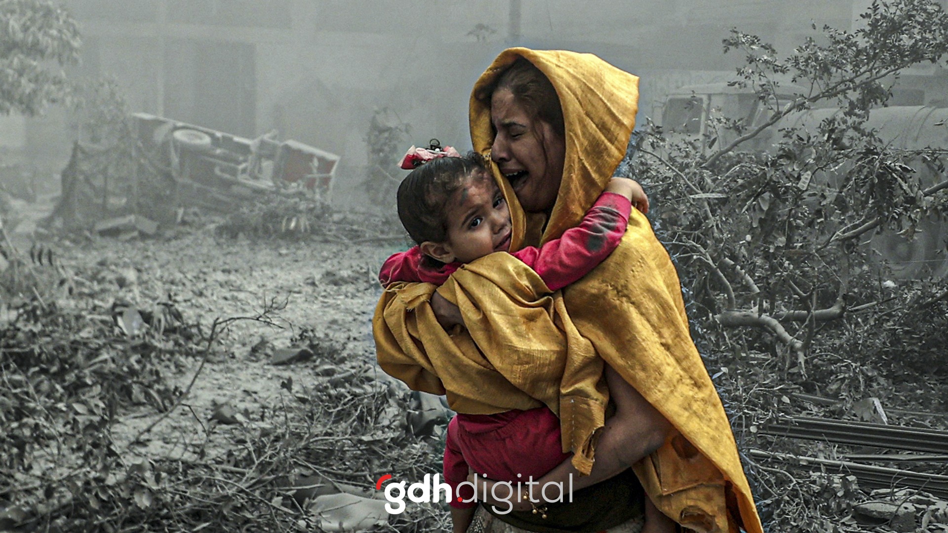 Bombardımanın gölgesinde çaresizlik. İsrail'in saldırısının hedefi olan evinden kızını kurtaran bir annenin daha sonra ne yapacağını bilmemenin çaresizliğini hissettiği o anlar.