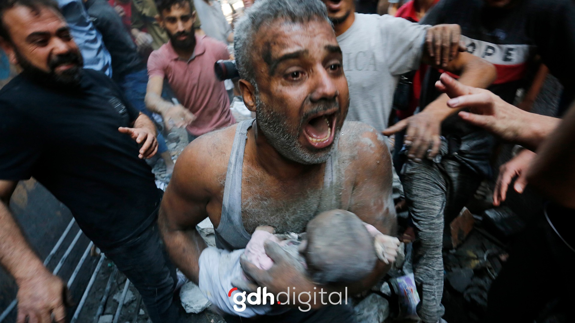 Kucağında öldürülen bebeğini taşıyan Gazzeli baba, görmek isteyene çok şey anlatıyor.