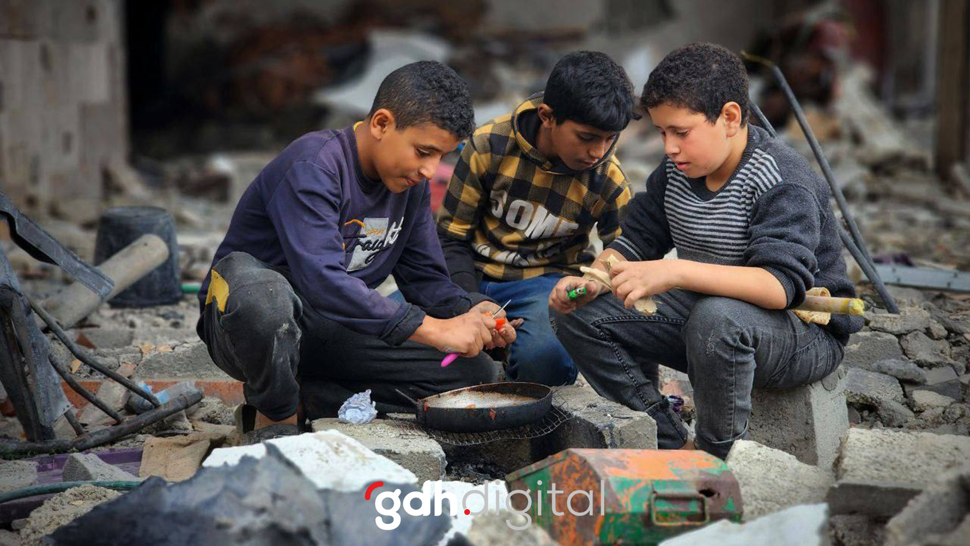 Gazze'nin çocukları, erken büyüyor. İsrail'in açlığa mahkum ettiği Gazze'de çevreden buldukları ile yemek pişirmeye çalışan Gazzeli çocuklar.