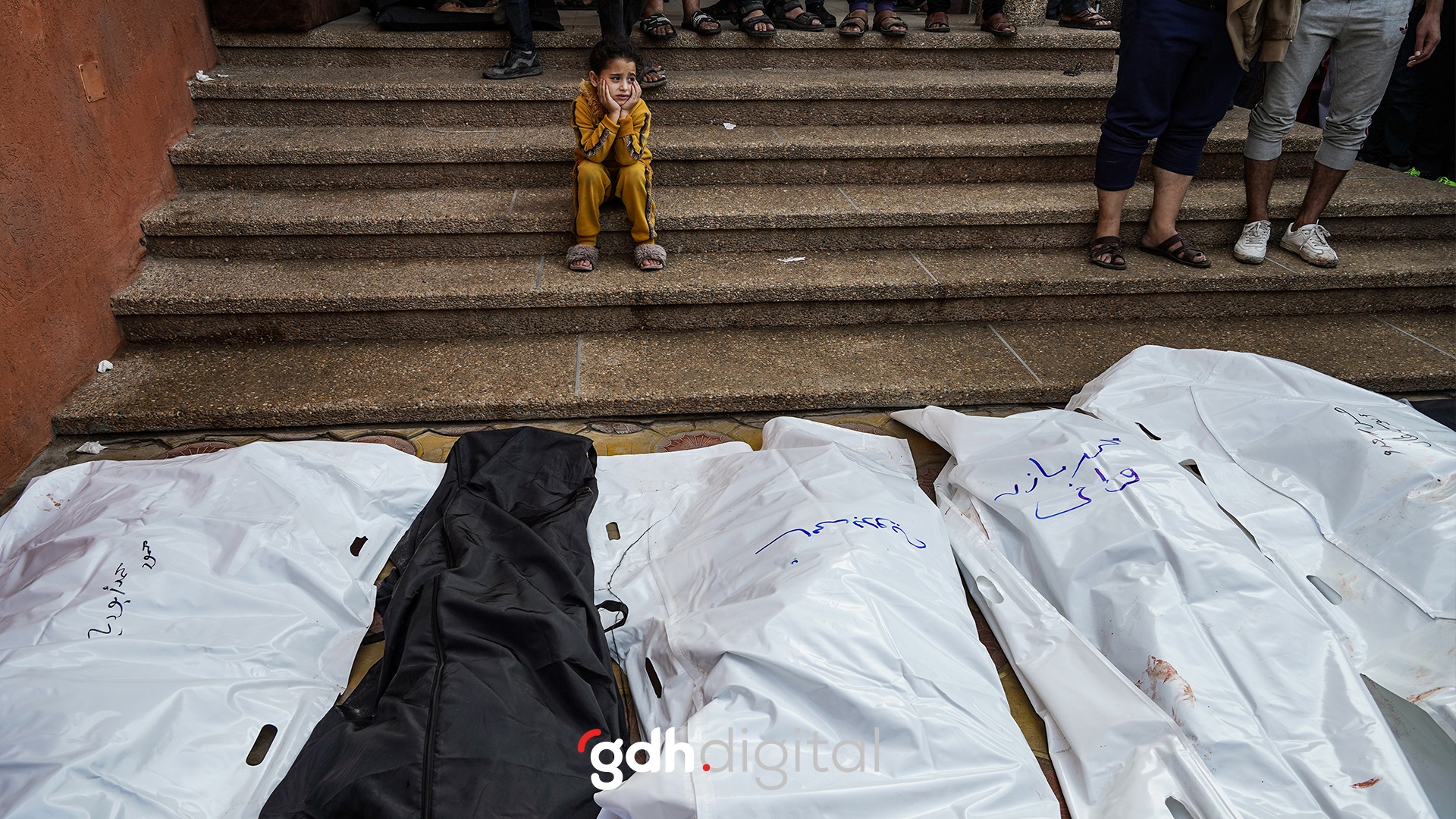 İsrail saldırılarında tüm ailesini kaybeden Gazzeli kız çocuğu, umutsuzluk içerisinde cesetlere bakıyor.