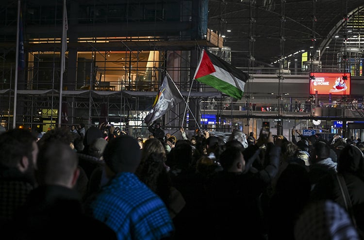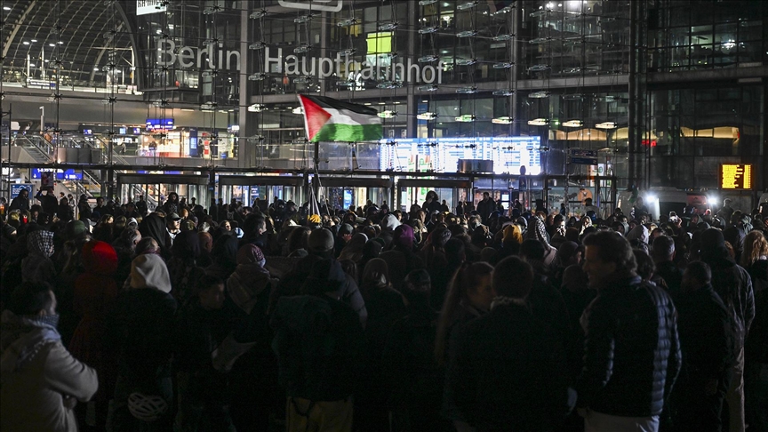 Almanya’nın başkenti Berlin’de ana tren garında toplanan 300 kişi, “Almanya finanse ediyor, İsrail bombalıyor” sloganı attı. Polis, aralarında Yahudilerin de bulunduğu bazı göstericileri gözaltına aldı.