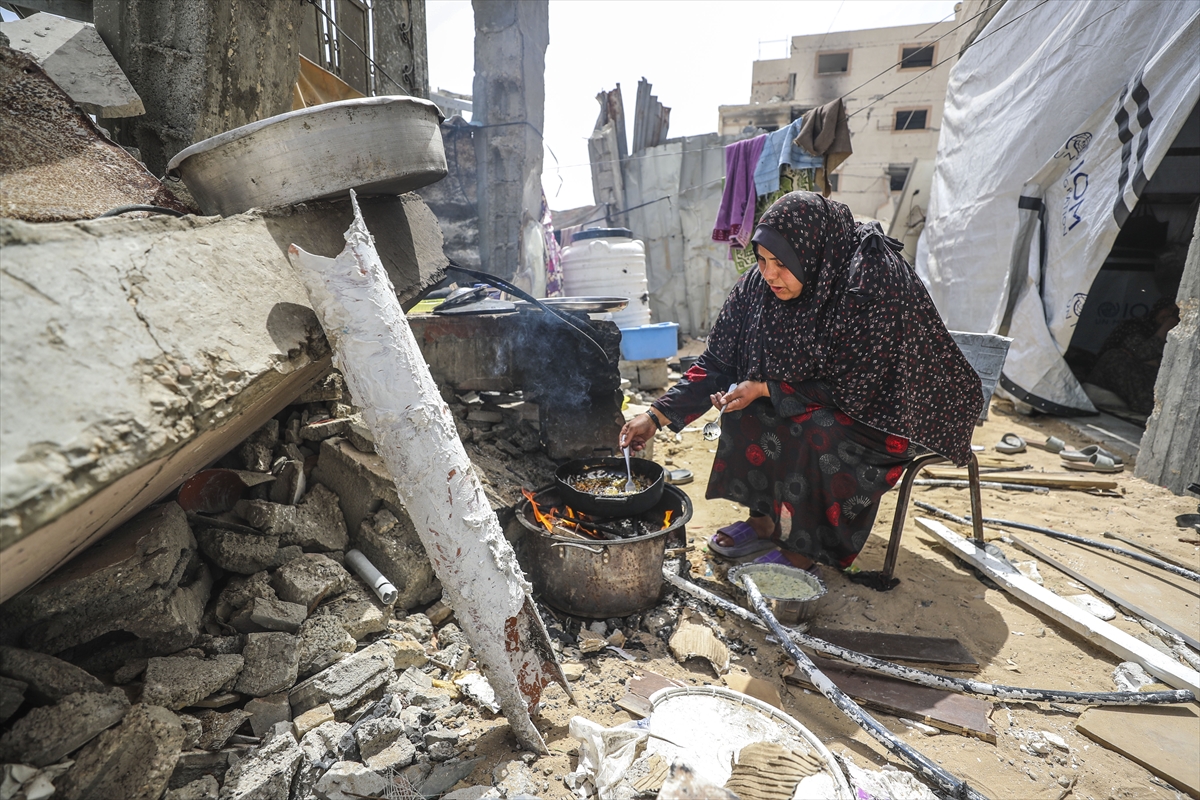 İsrail'in açlığı silah olarak kullandığı Gazze'ye insani yardım ve gıda girişi engelleniyor. Buna rağmen Gazzeli kadınlar, çadırlarda çevreden bulabildikleri yiyeceklerle çocuklarına yemek yapmaya devam ediyor.
