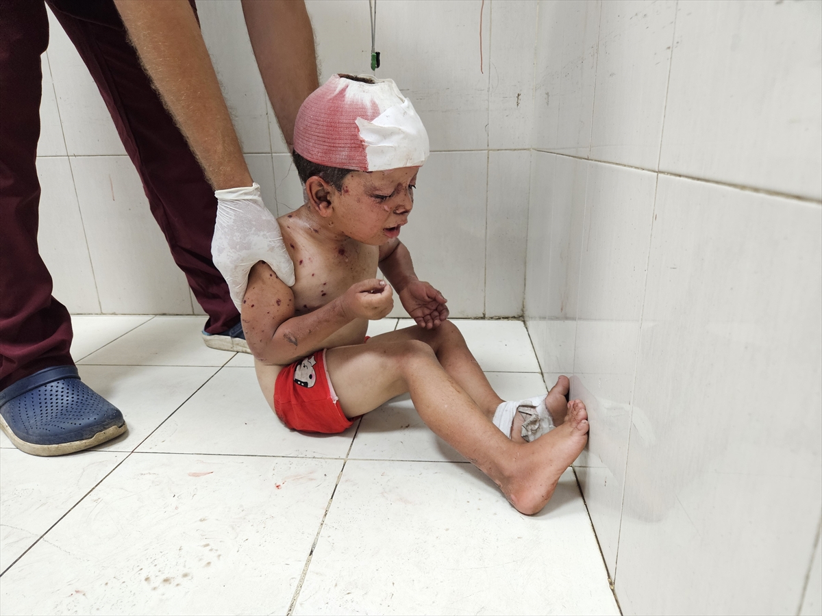 İsrail ordusunun Gazze'nin Han Yunus kentine bağlı el-Mevasi bölgesine düzenlediği saldırıda birçok çocuk yandı.