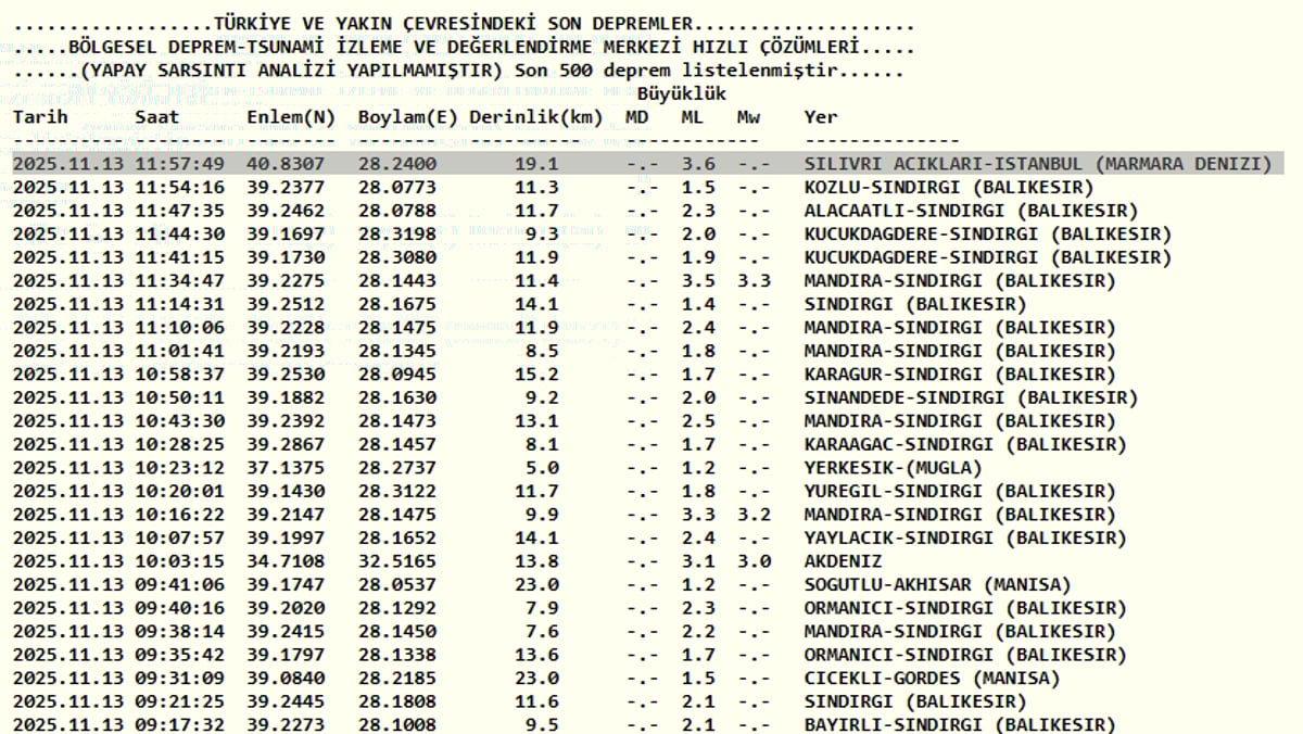 İstanbul'da deprem mi oldu? 13 Kasım AFAD ve Kandilli Rasathanesi son depremler listesi