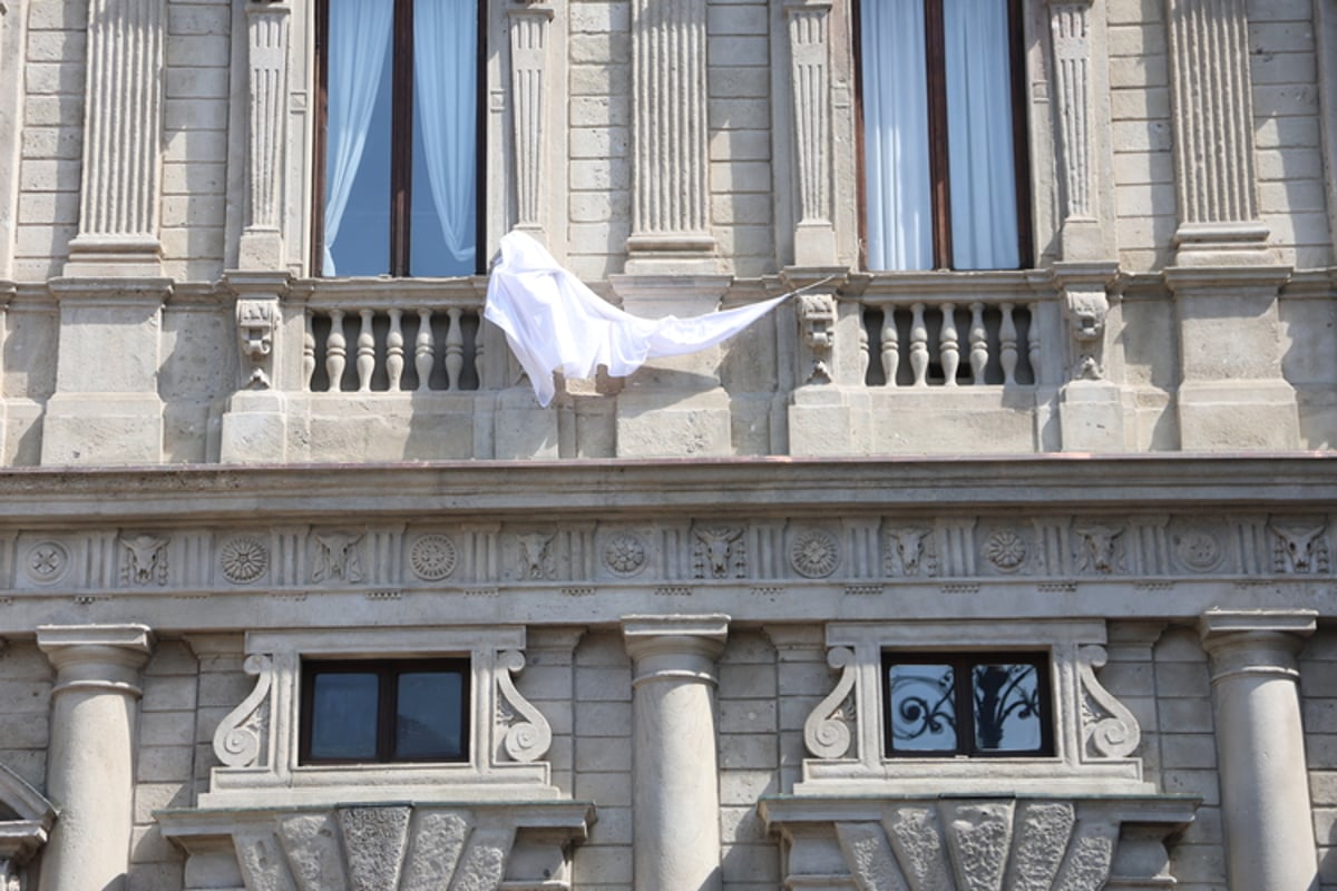 Floransa Belediyesi de eyleme katılarak, belediye binası olan tarihi Vecchio Sarayı’nın balkonuna beyaz bir çarşaf astı.