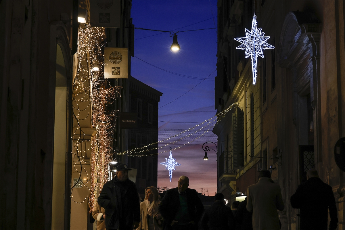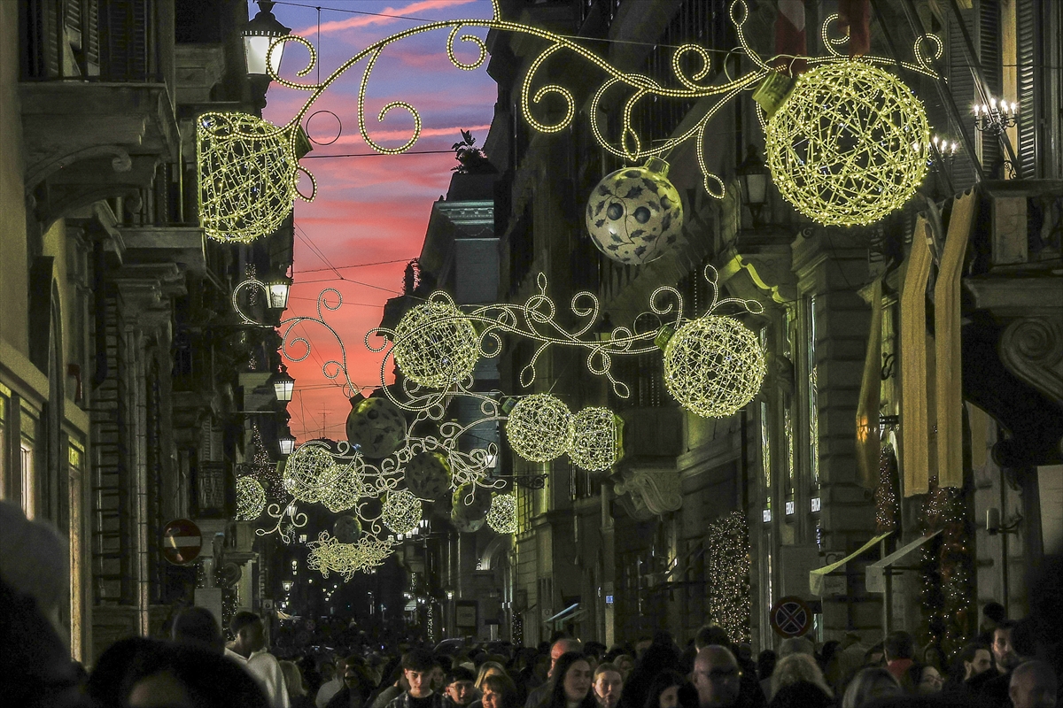 İtalya'nın başkenti Roma'nın en merkezi noktalarından biri olan Via del Corso Caddesi, Noel ışıklarıyla aydınlanarak yeni yıl öncesinde ziyaretçilerine görsel bir şölen sunuyor.