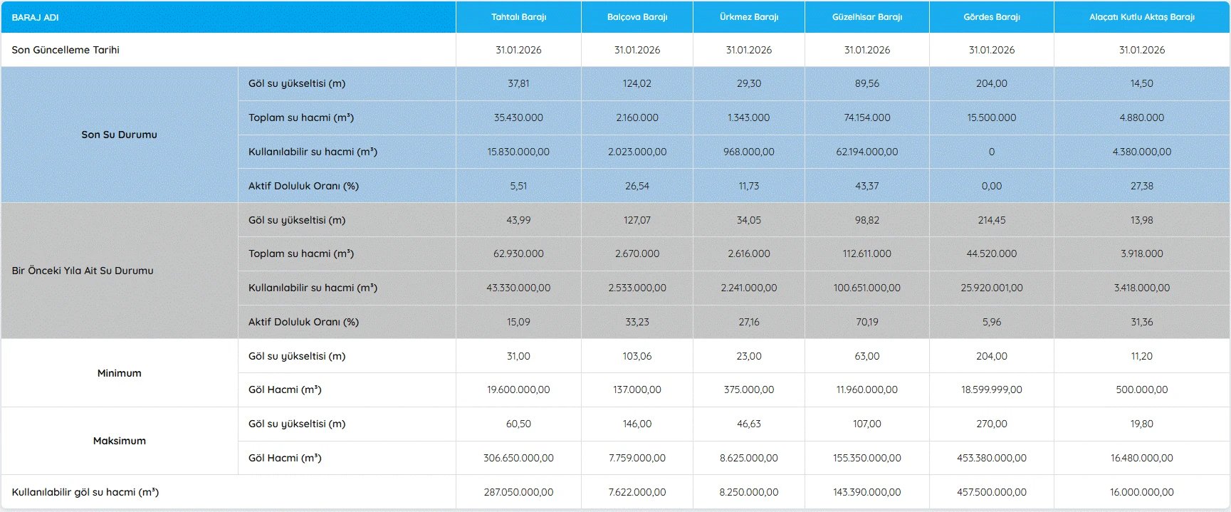 İzmir baraj doluluk oranları | İZSU ile 31 Ocak İzmir barajlarının doluluk oranı nasıl, yükseldi mi düştü mü?