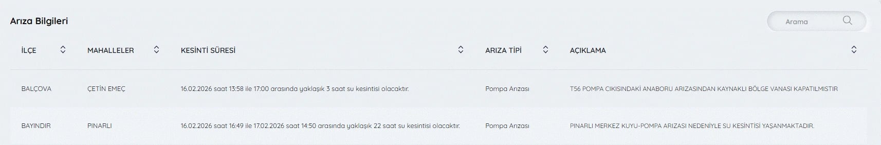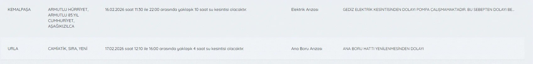 17 Şubat İzmir su kesintileri listesi ve tüm detaylar şöyle;