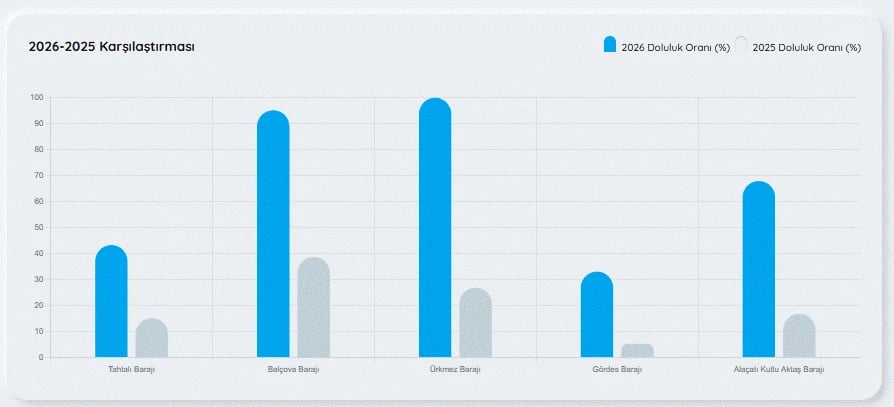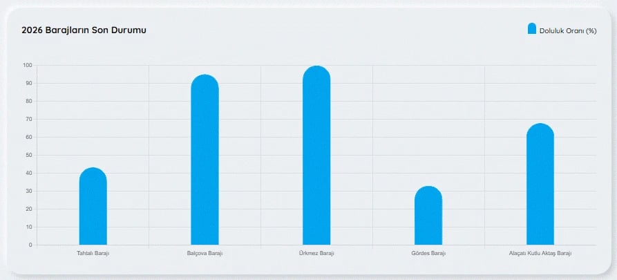 İzmir baraj doluluk oranları 30 Mart 2026 Pazartesi günü ilde yaşayanlarca merak edilerek İZSU baraj doluluk oranları nasıl, arttı mı, son durum nedir? sorularına cevap aranıyor.