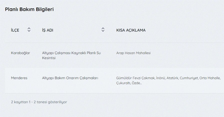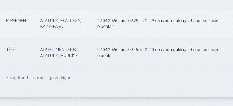 İşte bugünkü İzmir su kesintileri listesi detayları;