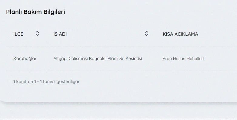 İZSU KESİNTİLER LİSTESİ